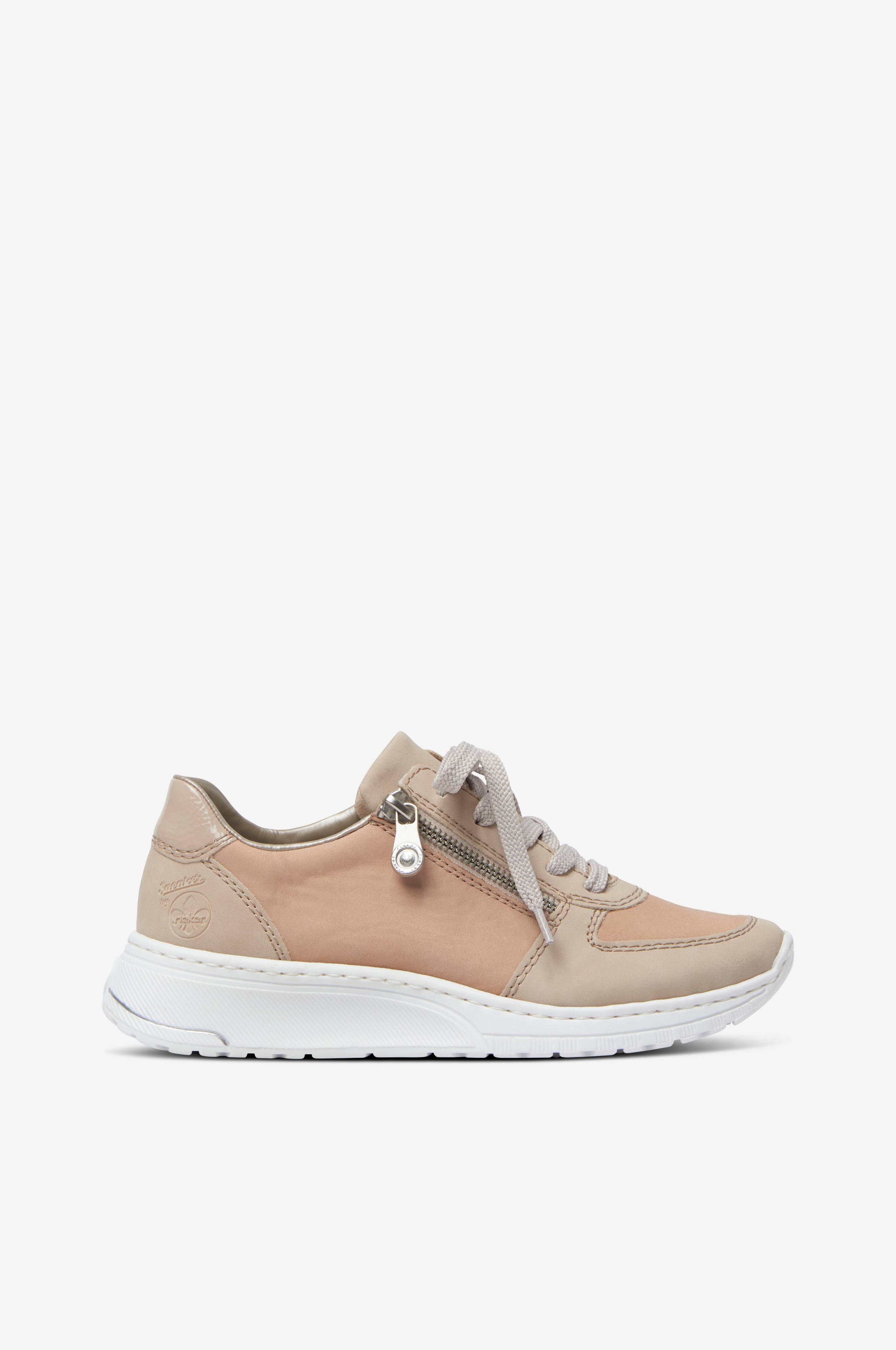Sneakers i nubuck med snørelukning og lynlås på ydersiden. Blød antistress-indersål, som former sig efter foden og reducerer træthedsfølelsen.