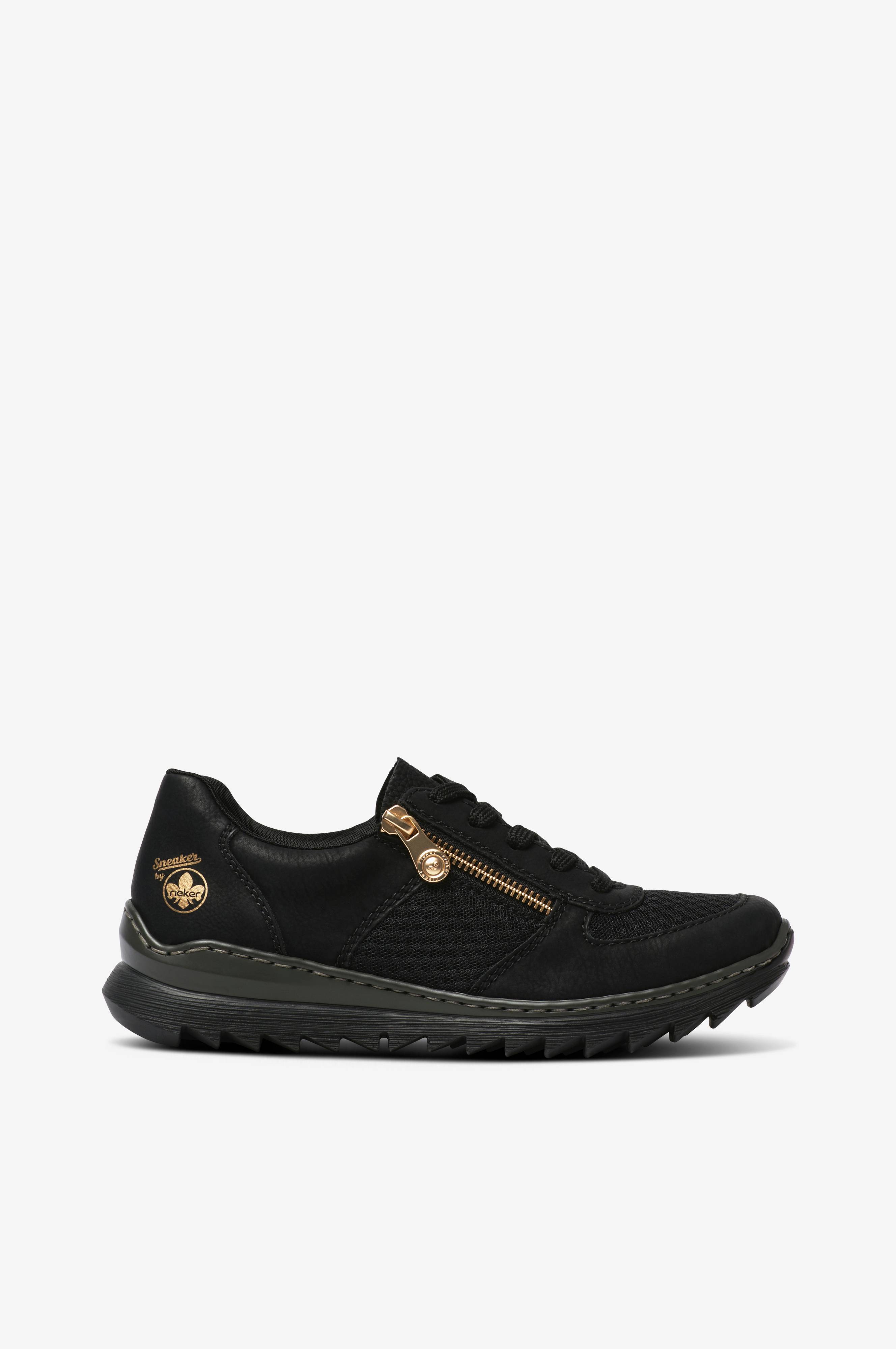 Sneakers i ventilerende tekstil og imiteret skind. Snøre og lynlås foran. Fodformet og skøn med blød MemoSoft-indersål, som former sig efter foden og reducerer træthed. Tekstilfor.