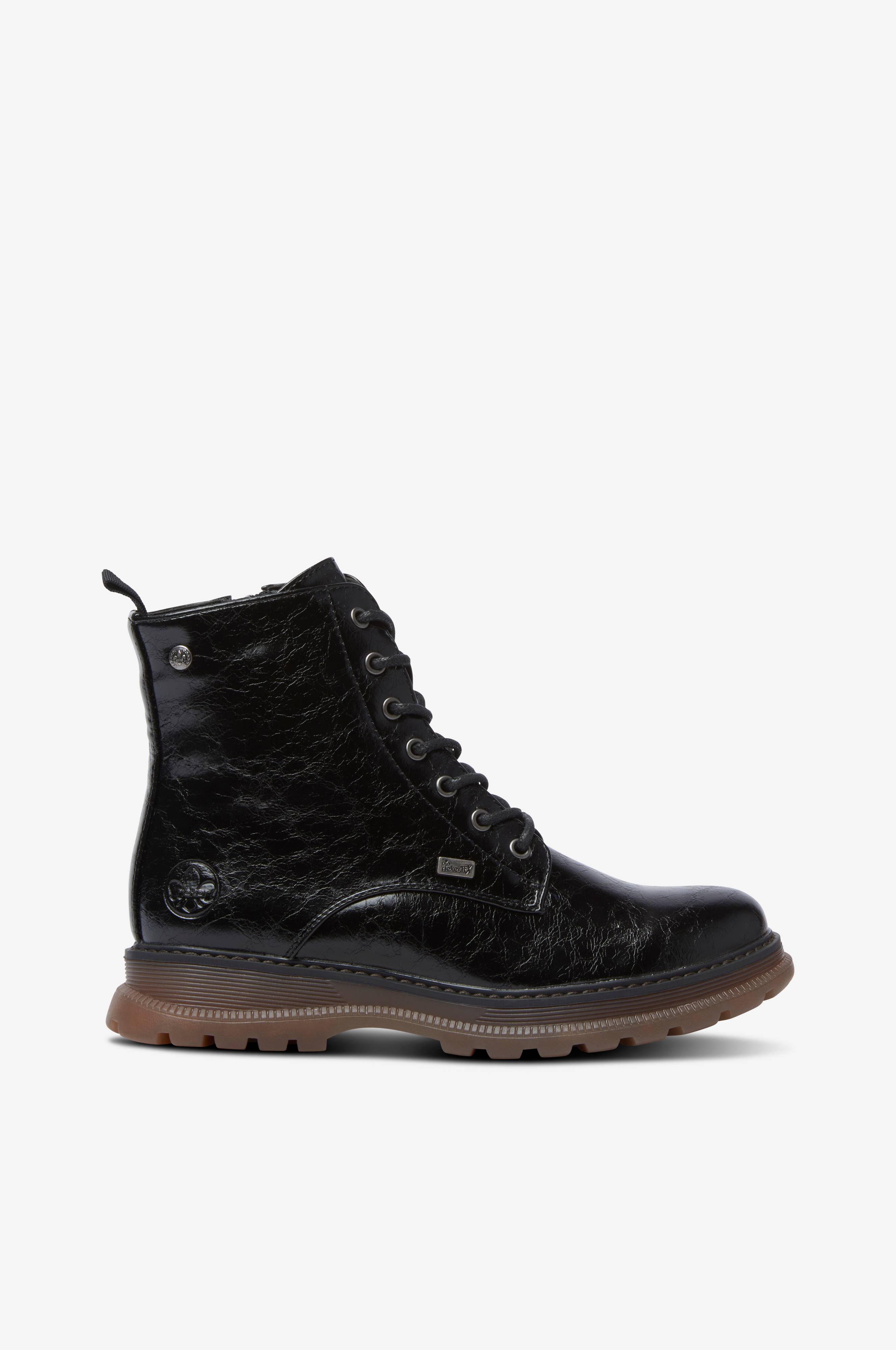 Varmforet støvle i imiteret skind med præget, blank overflade. Vandafvisende materiale og blødt, loddent for med åndbarhed. Lynlås på skaftets inderside og snøre foran. Skafthøjde ca. 13 cm i str. 37.