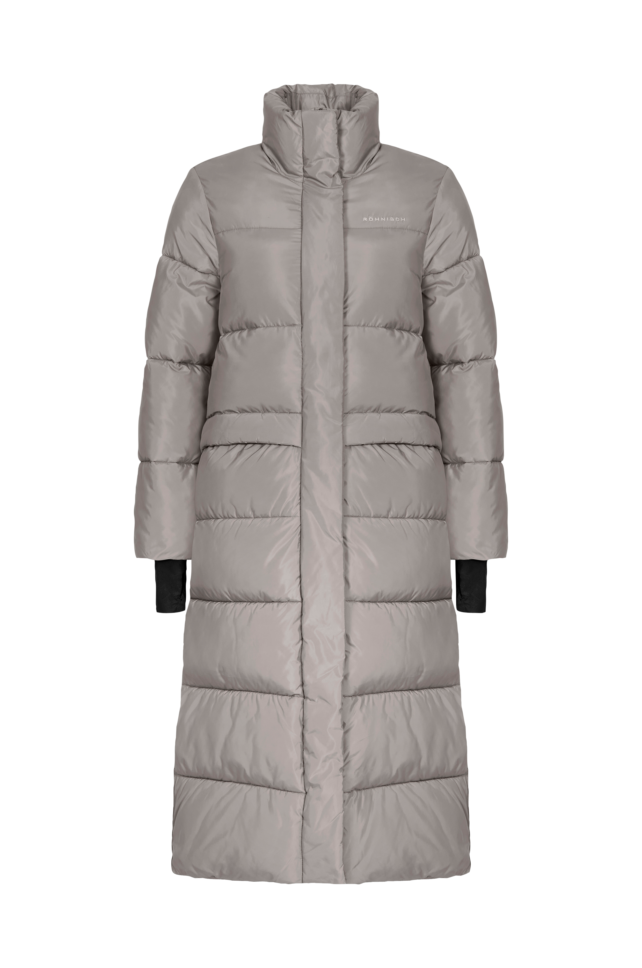 • Quiltet, foret frakke • Vandafvisende ydermateriale • Høj, foret krave • To-vejs lynlås • Inderlomme • To store, skjulte lommer med trykknapslukning og fleece for • Elastiske ribmanchetter ved manchetterne med tommelfingerhul • Lange slidser nede i siderne med trykknapper • Længde: 120 cm i størrelse S