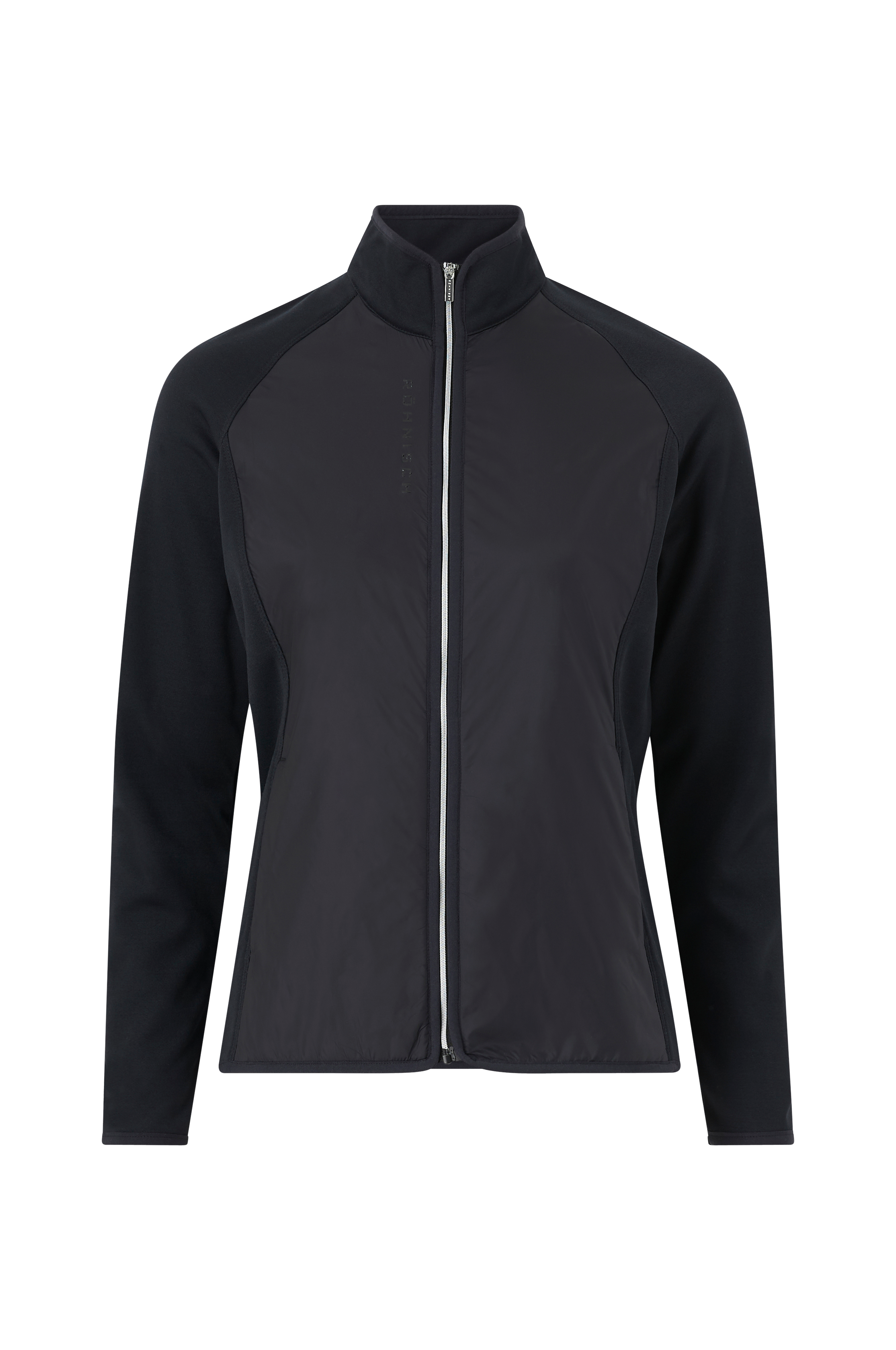 En funktionel golfjakke i varmende thermojersey med stretch. Den børstede inderside giver ekstra varme, og vindpanelerne foran og bagpå beskytter mod kold vind. En perfekt jakke til golf eller andre aktiviteter hvor bevægelsesfrihed er et must. Hellang lynlås foran og to sidelommer med lynlås. Normal pasform.