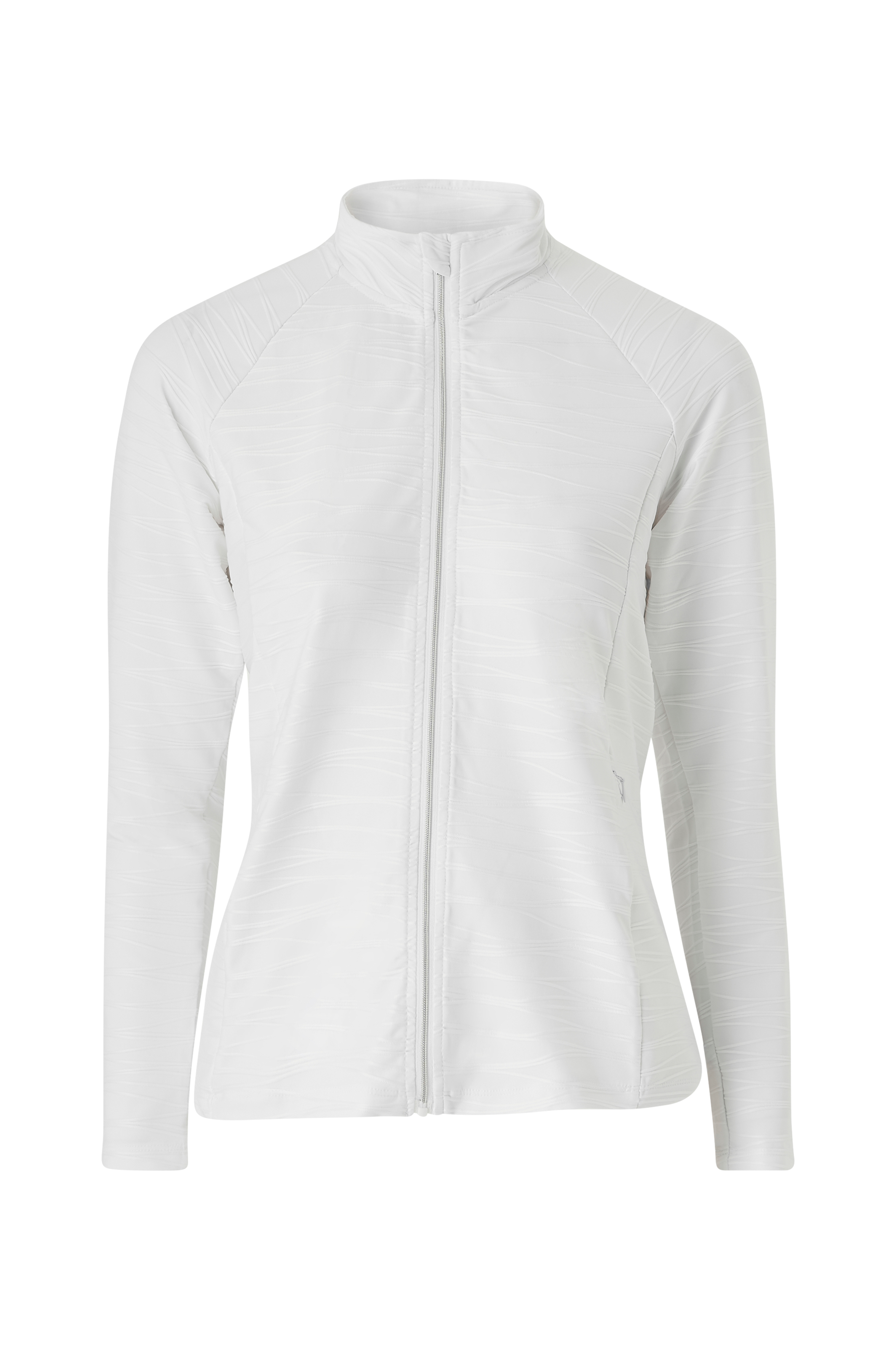Jodie Jacket, en blød og tynd golfjakke fremstillet i et genindvundet funktionsmateriale som er åndbart, transporterer fugt væk og er hurtigtørrende. Lukkes med lynlås. To lommer med lynlås.