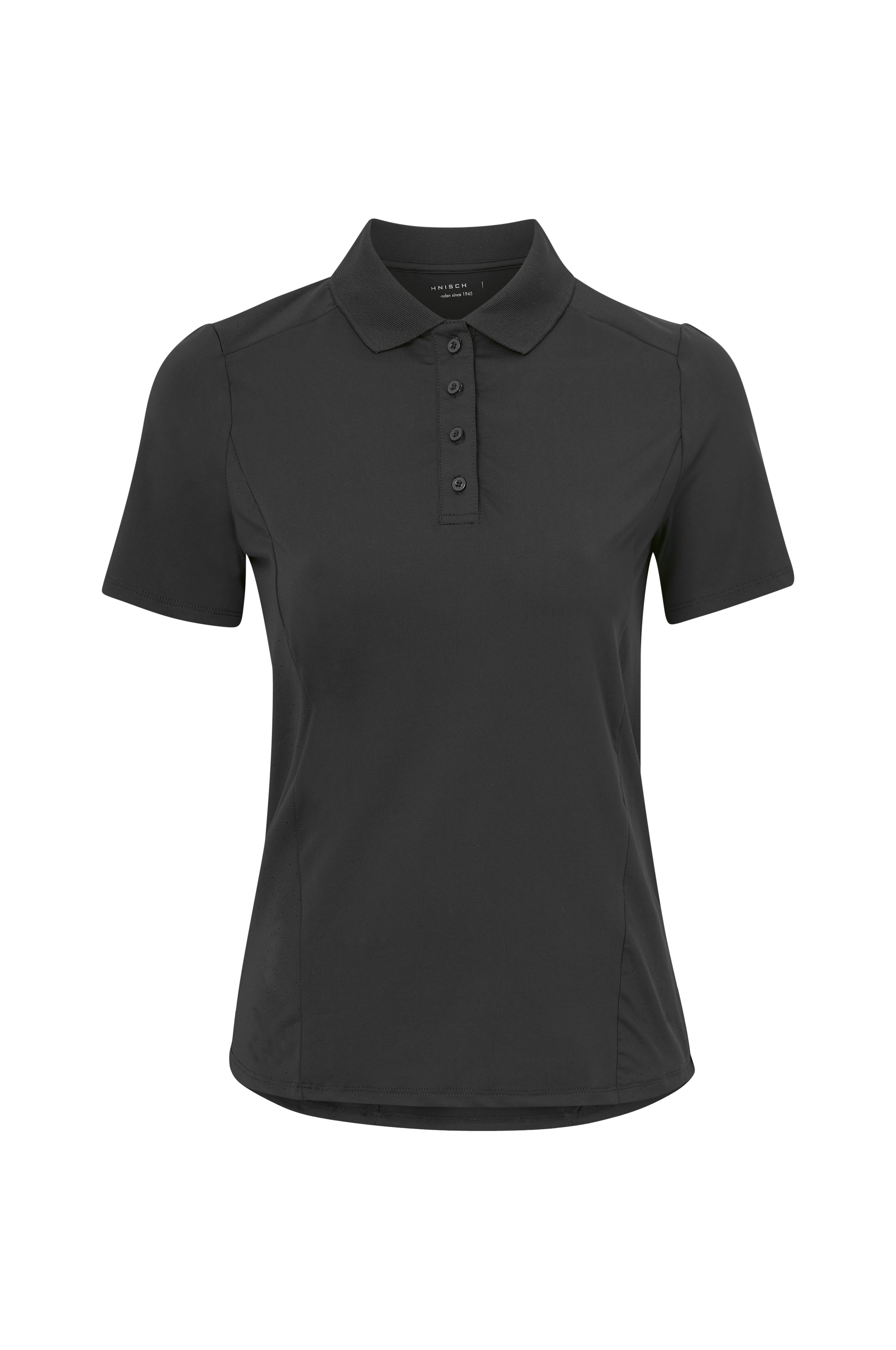 Top fremstillet i hurtigtørrende, fugttransporterende funktionsmateriale. Krave i rib og fire knapper. Paneler med laserskårede huller for god ventilationsevne og ekstra kølig fornemmelse.