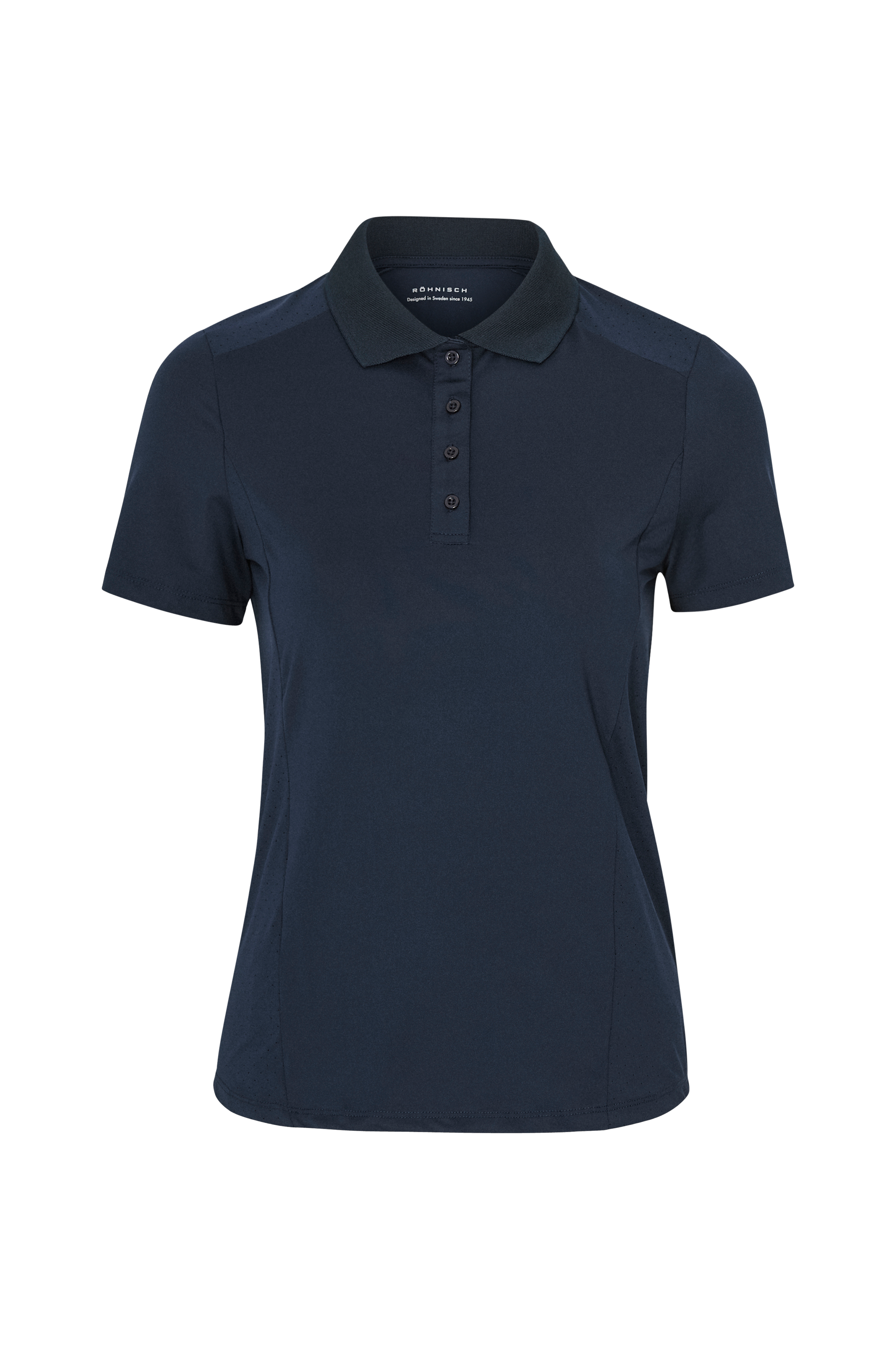 Top fremstillet i hurtigtørrende, fugttransporterende funktionsmateriale. Krave i rib og fire knapper. Paneler med laserskårede huller for god ventilationsevne og ekstra kølig fornemmelse.