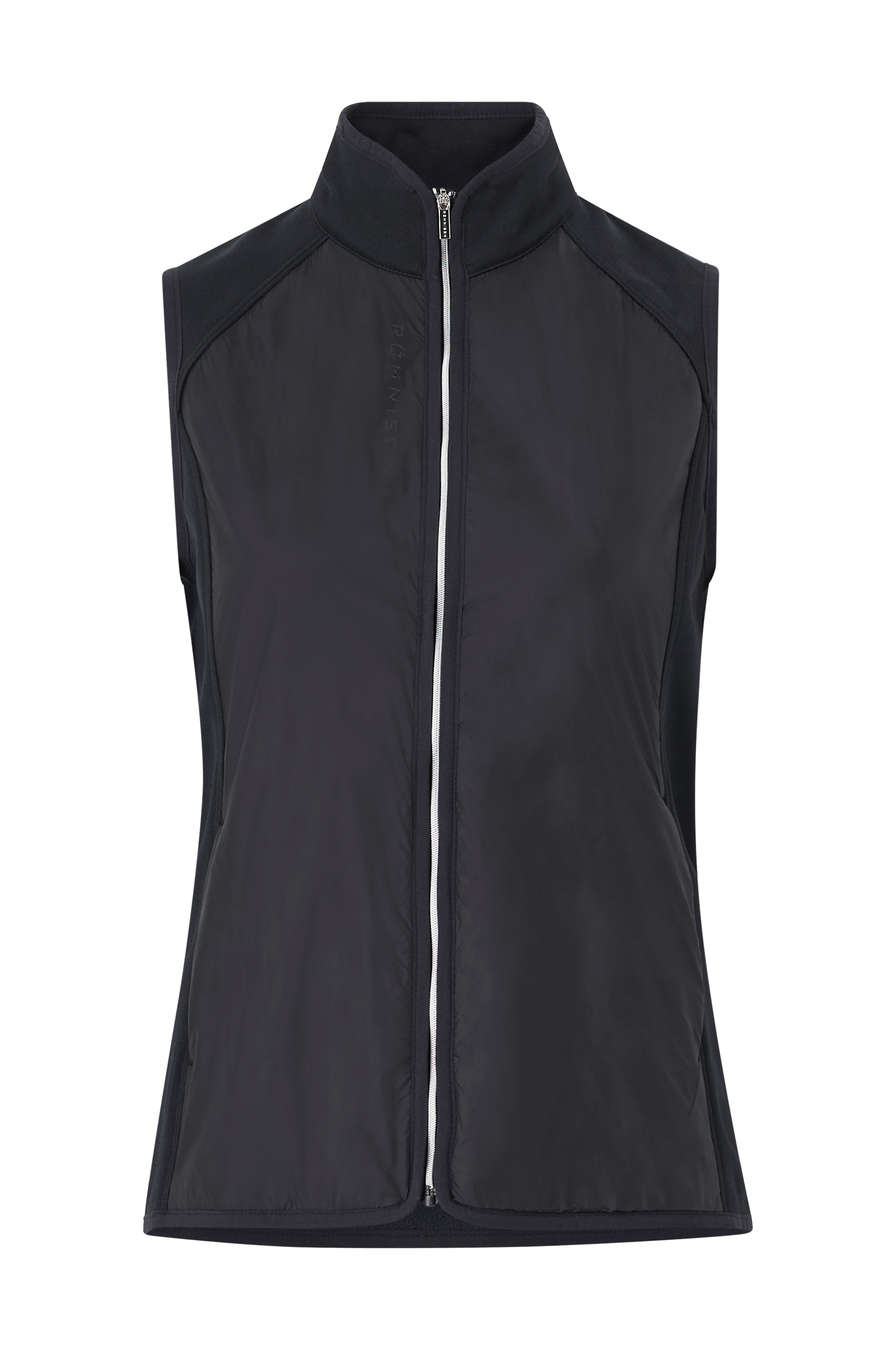Golfvest i varmende termojersey med stretch. Den børstede inderside giver ekstra varme, og vindpanelerne foran og bagpå beskytter mod kold vind. En perfekt vest til golf eller andre aktiviteter, hvor bevægelsesfrihed er et must. Hellang lynlås foran og to sidelommer med lynlås. Normal pasform.