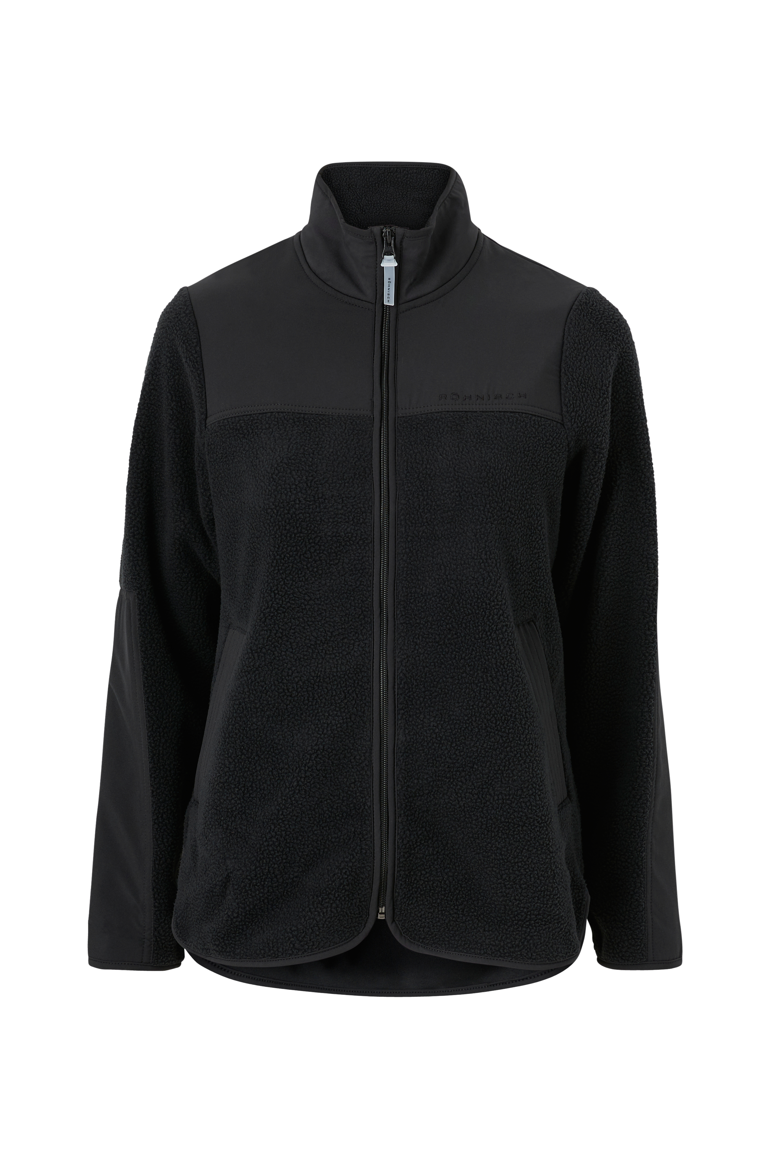 Sporty jakke i blød plys med vindtæt kontrastmateriale på skuldrene og i ærmekant, samt høj standkrave som holder på varmen og beskytter mod kolde vinde. Lynlås og lommer foran. Afrundede sider med slids forneden. Glat inderside. Løs pasform. Uforet.