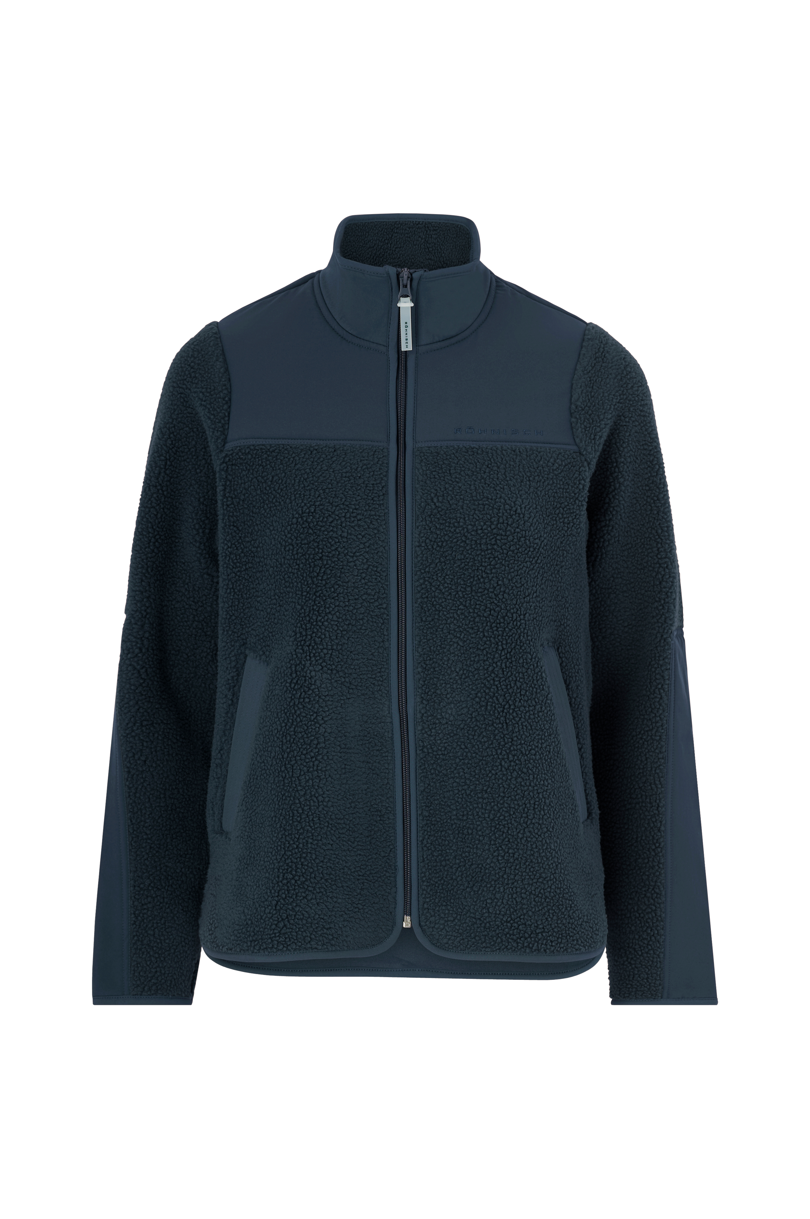 Sporty jakke i blød plys med vindtæt kontrastmateriale på skuldrene og i ærmekant, samt høj standkrave som holder på varmen og beskytter mod kolde vinde. Lynlås og lommer foran. Afrundede sider med slids forneden. Glat inderside. Løs pasform. Uforet.