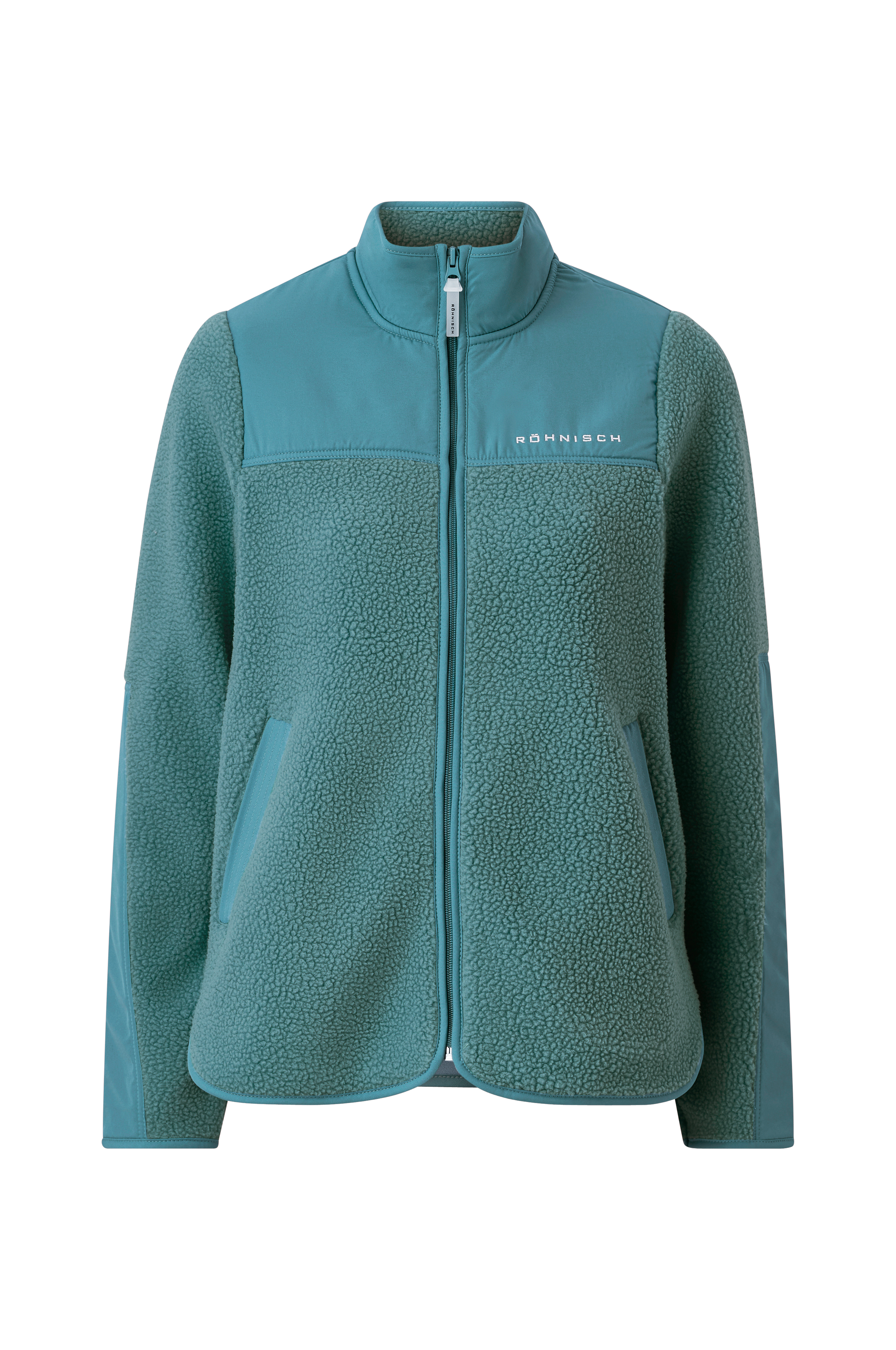 Sporty jakke i blød plys med vindtæt kontrastmateriale på skuldrene og i ærmekant, samt høj standkrave som holder på varmen og beskytter mod kolde vinde. Lynlås og lommer foran. Afrundede sider med slids forneden. Glat inderside. Løs pasform. Uforet.