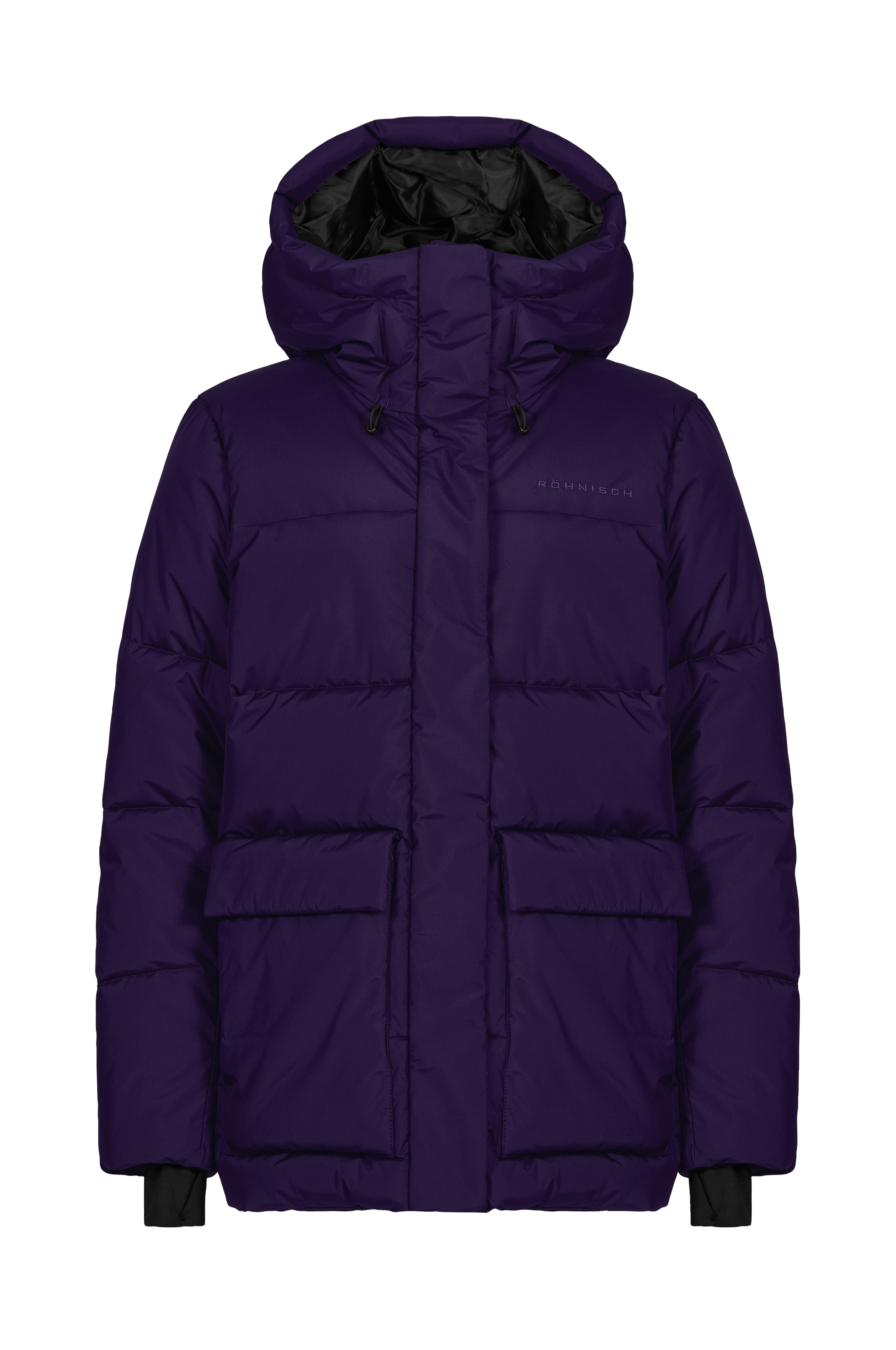 • Vindtæt, vandtæt jakke med dunlignende fyld • Fast hætte med træksnørre • Høj krave med fleece for • To-vejs lynlås • Vindflap over lynlåsen med trykknapper • To sidelommer med fleece for • To yderlommer med knapbare låg • Inderlomme med lynlås • En inderlomme i mesh • Elastiske ribmanchetter med tommelfingerhul ved manchetterne • Træksnørre ved nederste kant • Vandsøjle: 10 000 mm • Længde: 80 cm i størrelse S