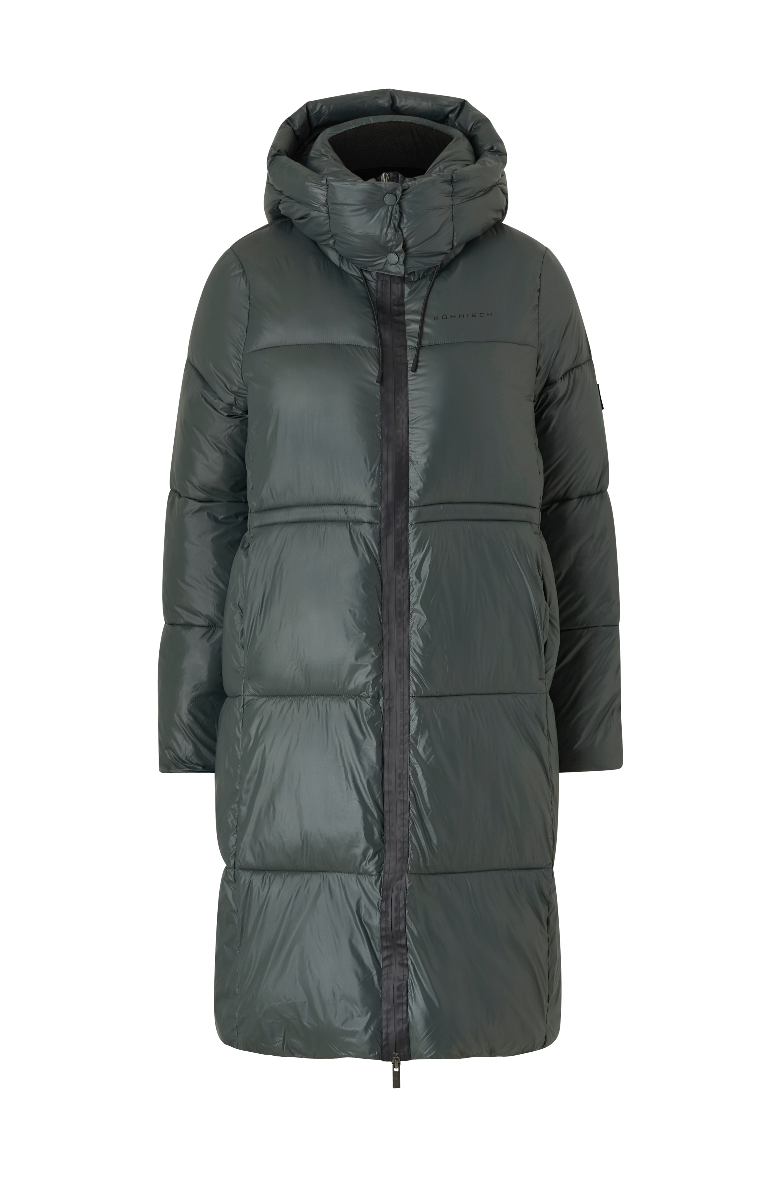 • Lang parka med dunlignende fyld • Vandafvisende ydermateriale • Aftagelig hætte med træksnørre • To-vejs lynlås • To yderlommer med trykknap • En inderlomme med trykknap • Indvendig træksnørre ved taljen • Elastiske ribmanchetter ved manchetterne med tommelfingerhul • Længde: 106 cm i størrelse XS