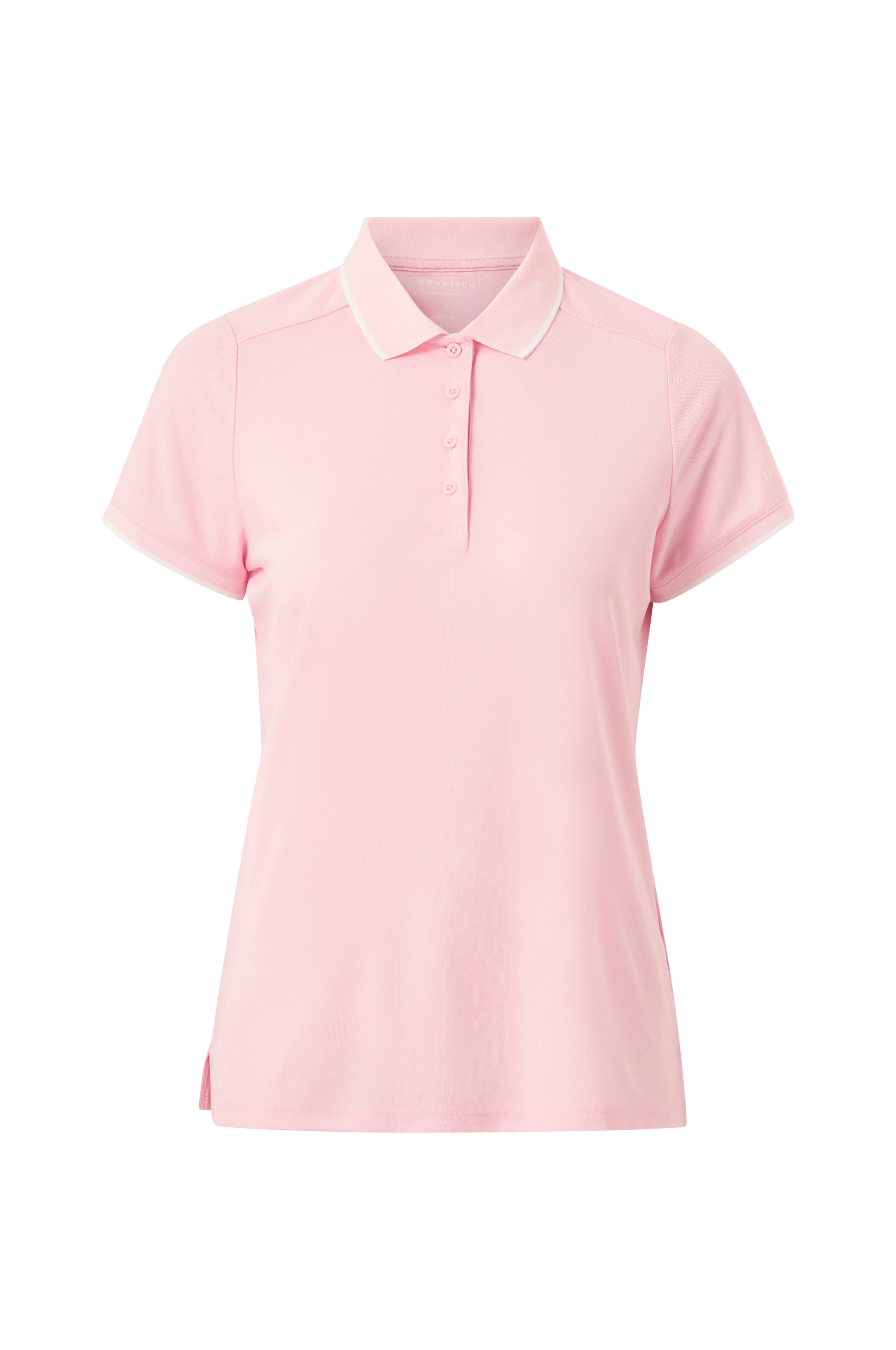 • Ribbet krave• Fire knapper• Blødt, hurtigtørrende, åndbart pikémateriale• Slids nede i siderne