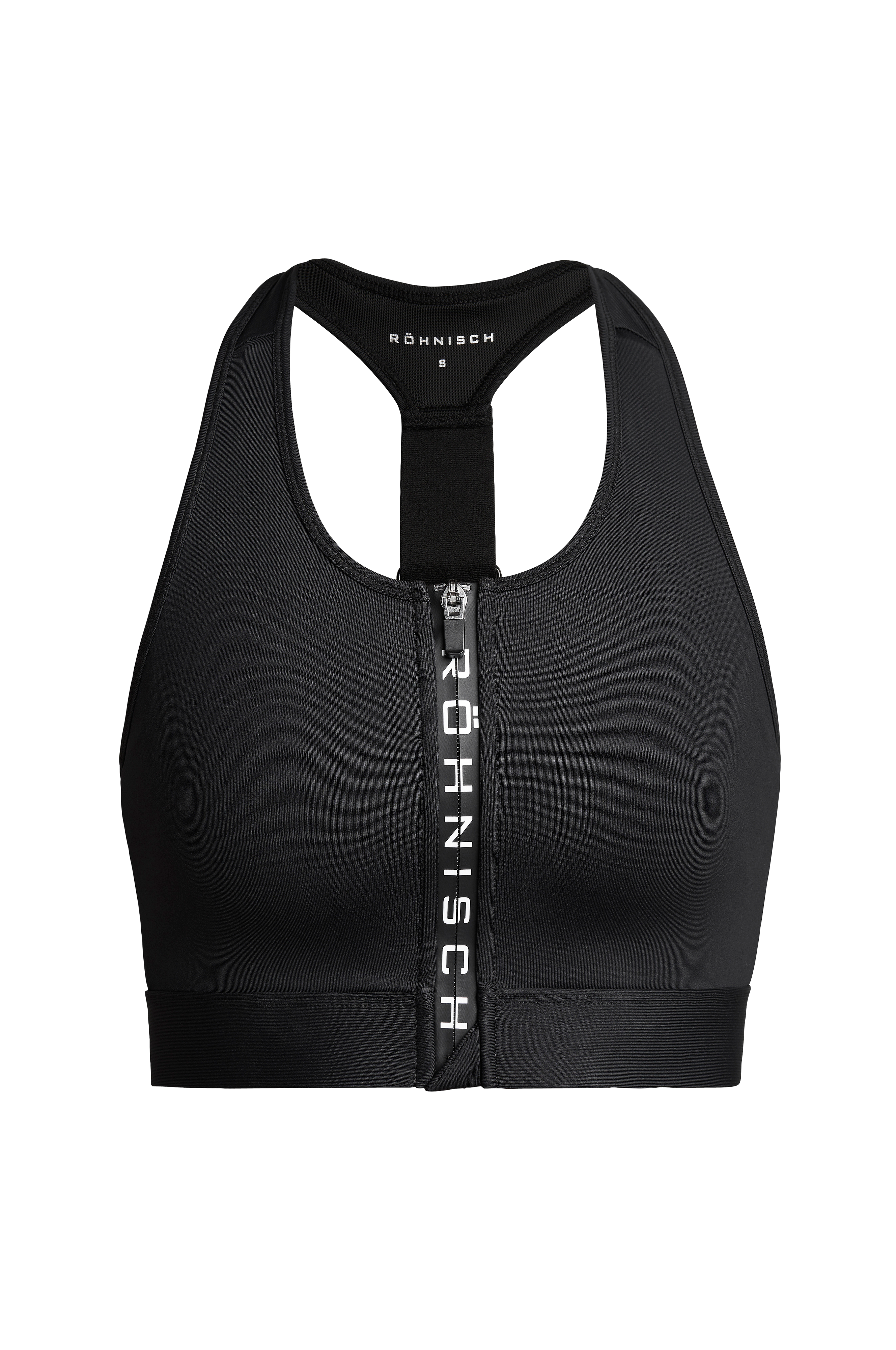 Röhnisch sports-bh til højintensiv træning. Denne bh har lynlås foran hvilket gør den enkel at tage på og af. Den behagelige bryderryg giver sammen med de brede skulderstropper god støtte, så du kan fokusere på din træning. Det justerbare bånd i ryggen hjælper med at få bh'en til at sidde perfekt. Fremstillet i genindvundet funktionsmateriale som er åndbart og transporterer fugt væk fra kroppen.