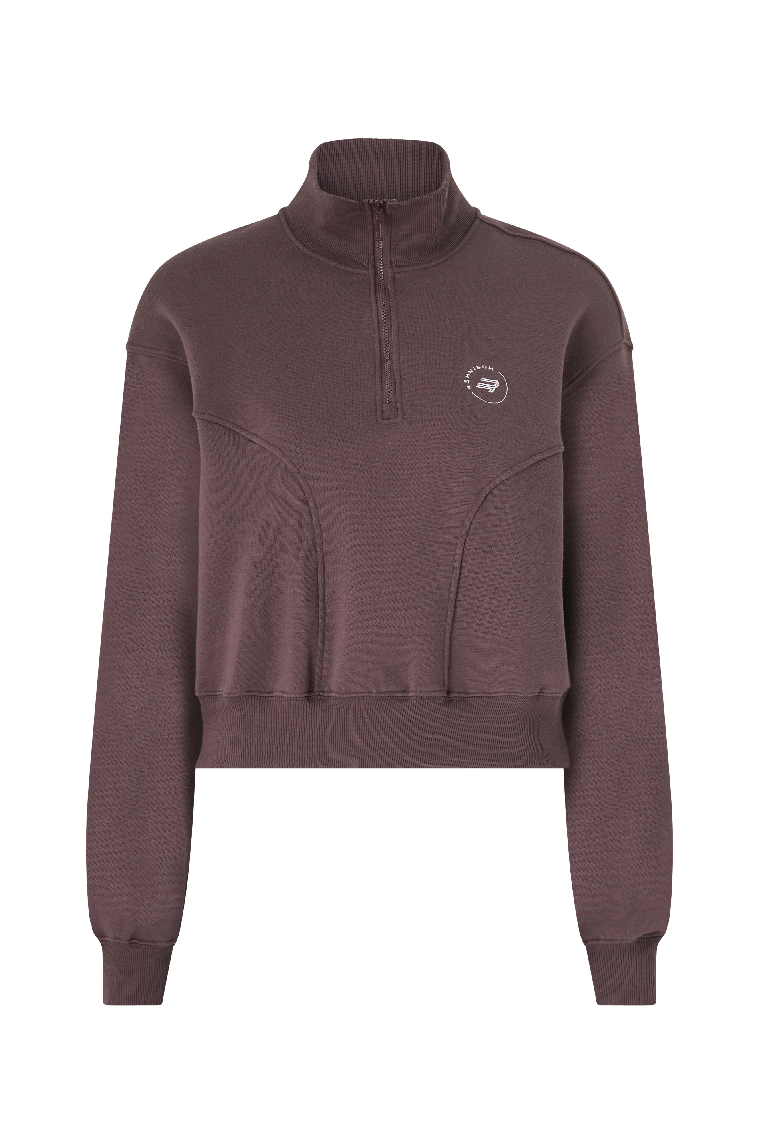 • Blød, børstet inderside• Croppet længde• Høj, ribbet krave• Kort lynlås• Nedsænkede skuldre• Ribmanchetter ved manchetterne og nederst