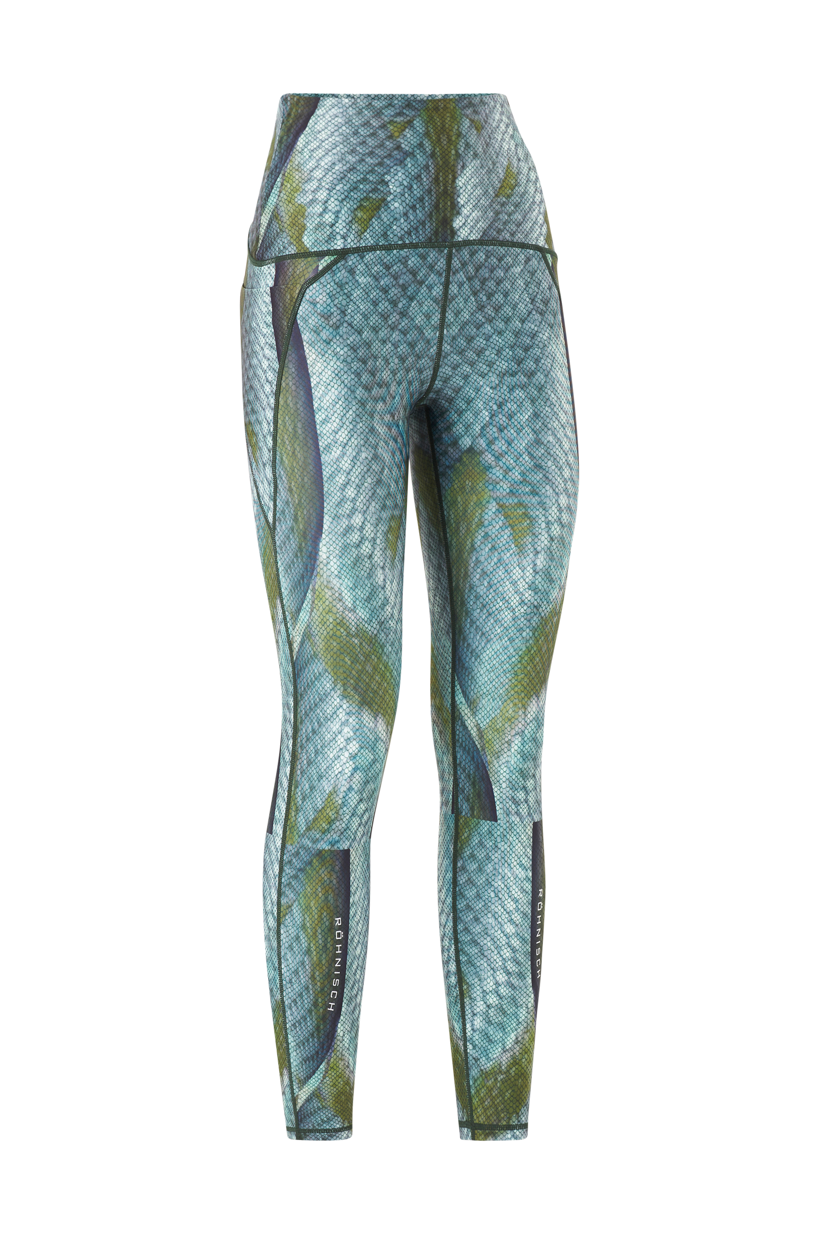 • Åndbart, svedtransporterende materiale • Høj talje med indvendig træksnørre • Lang længde • Benlomme • Fold i benlommen for at holde telefonen på plads
