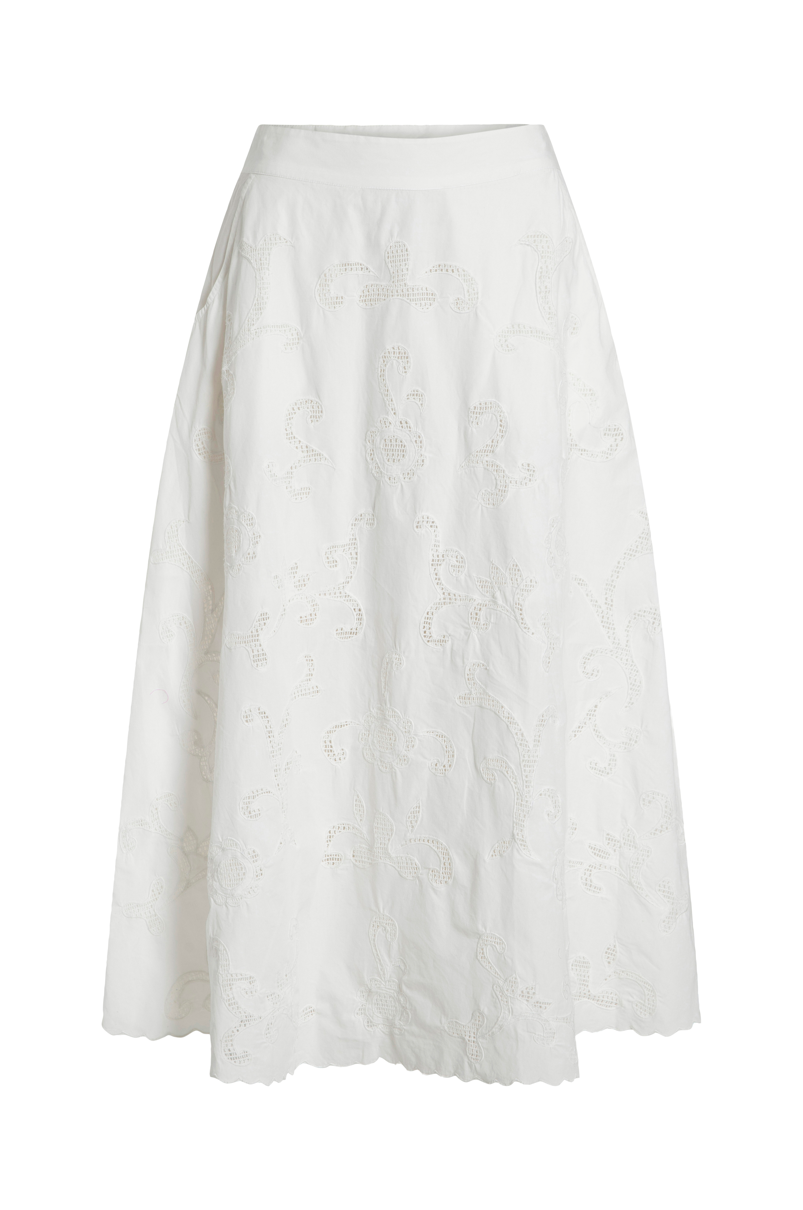 • Nederdel med broderede detaljer• Høj talje• Sidelommer• Skjult lynlåslukning i den ene side• Inderfor på toppen• Normal pasform• Længde: 91 cm i størrelse 36