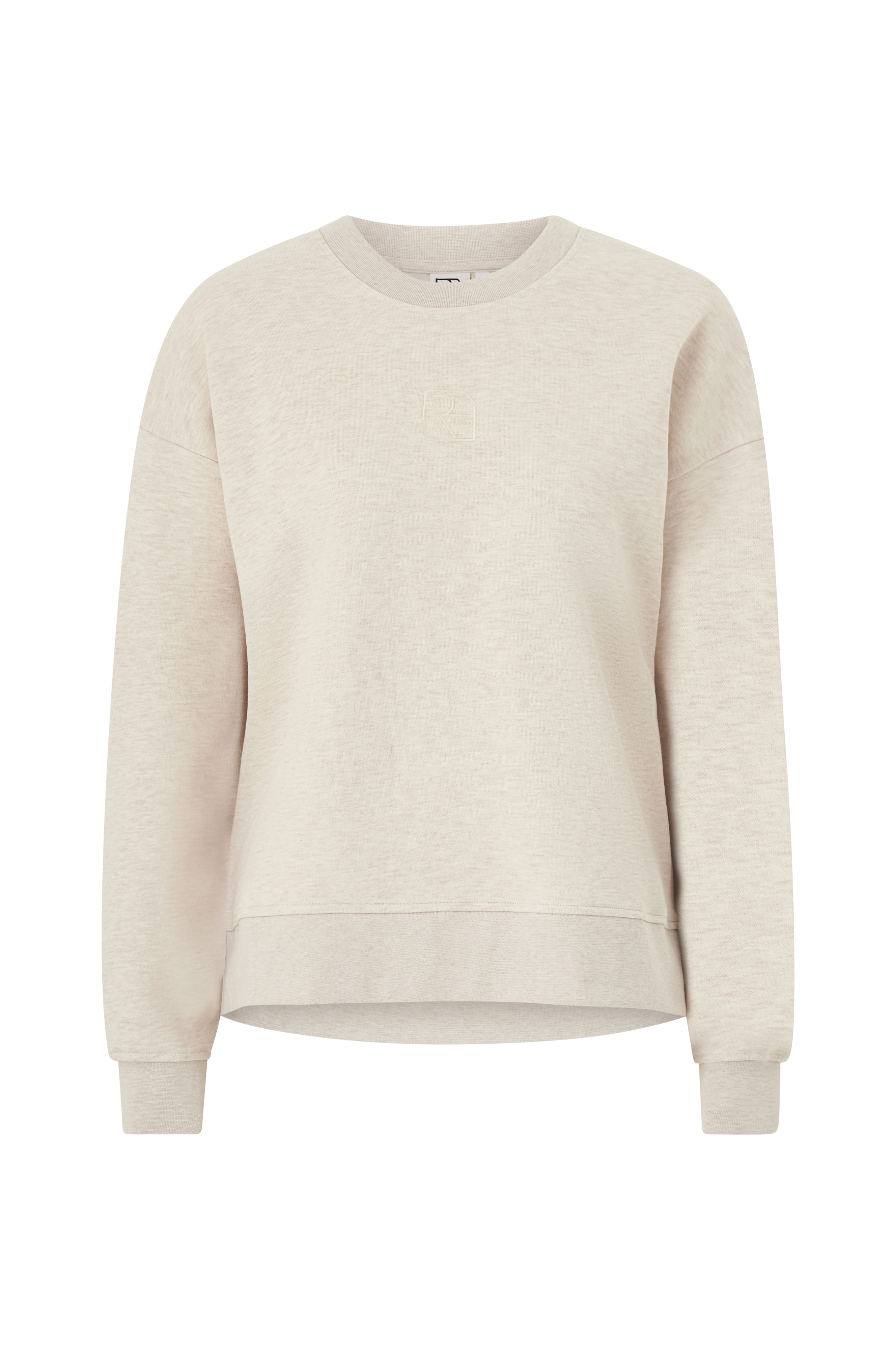 • Rund hals• Broderet logo midt foran• Nedsænkede skuldre• Ribmanchetter ved manchetterne og nederst