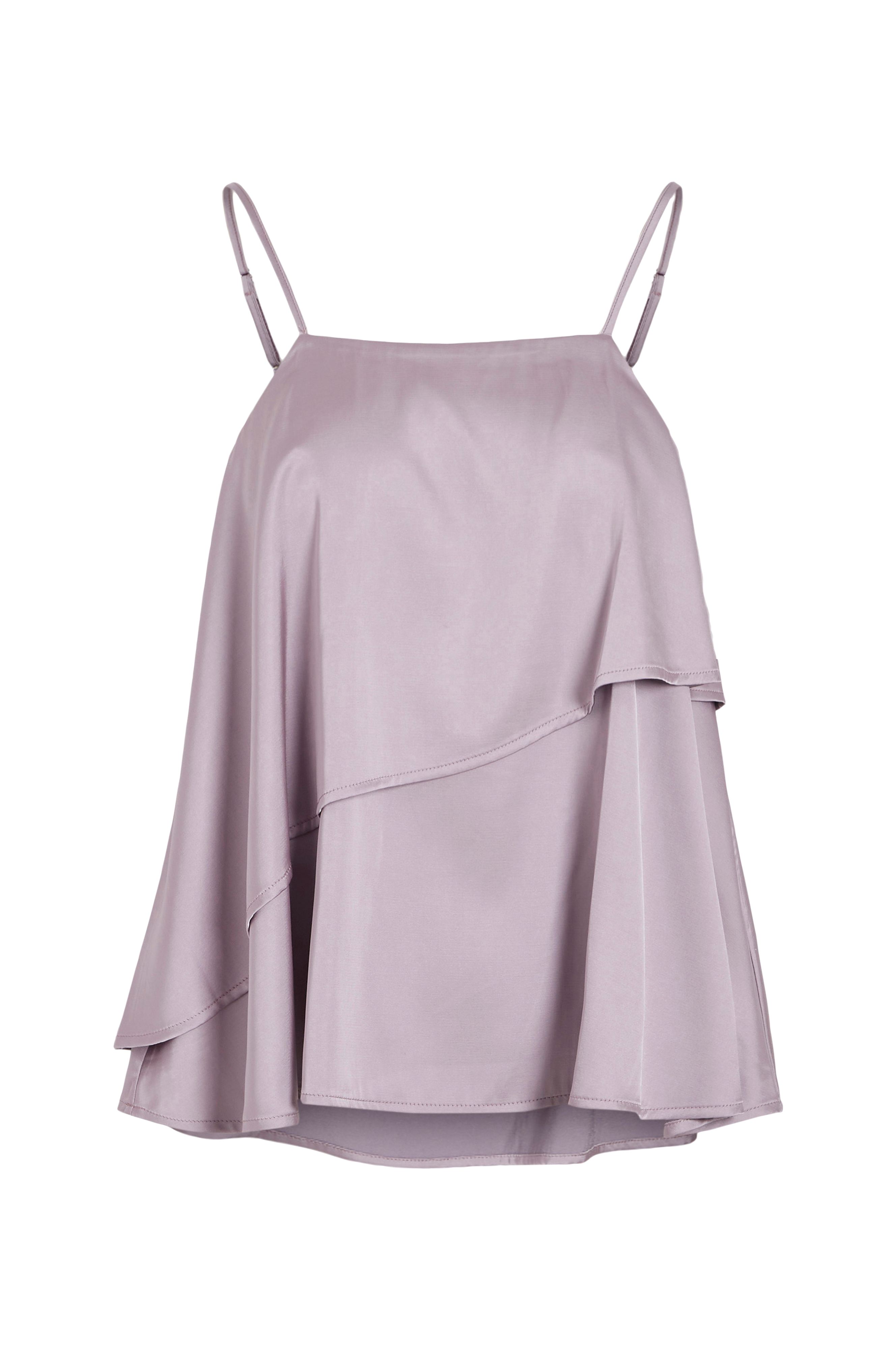 • Ærmeløs top i satin• Tynde, justérbare skulderstropper• Bred pasform• Flæselag på toppen