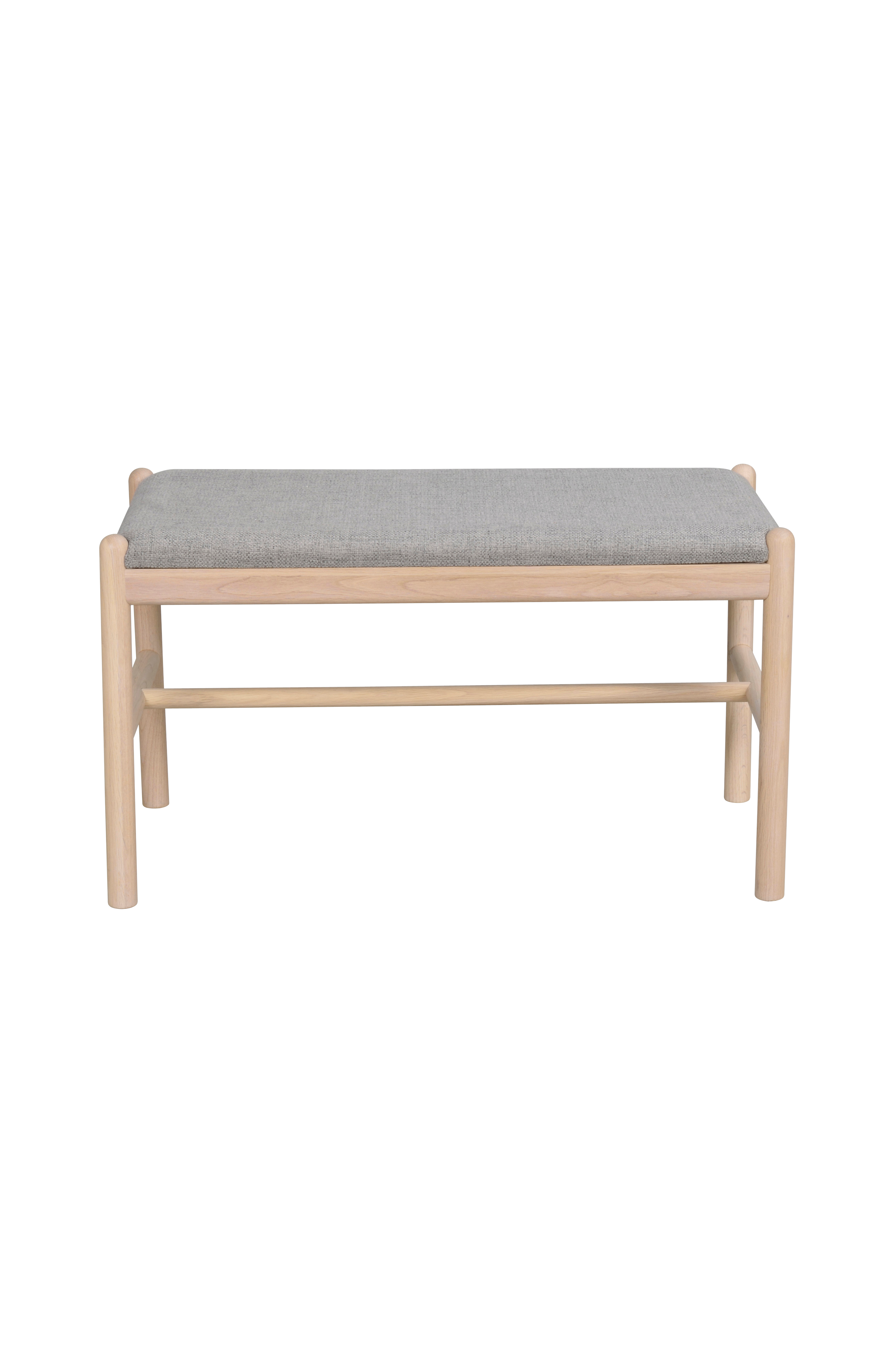 Milford bænk i massiv eg. Med gråt, slidstærkt polyesterstof. Milford bænk er designet af Rowico. 40 x 80, højde 45 cm. Leveres usamlet.
