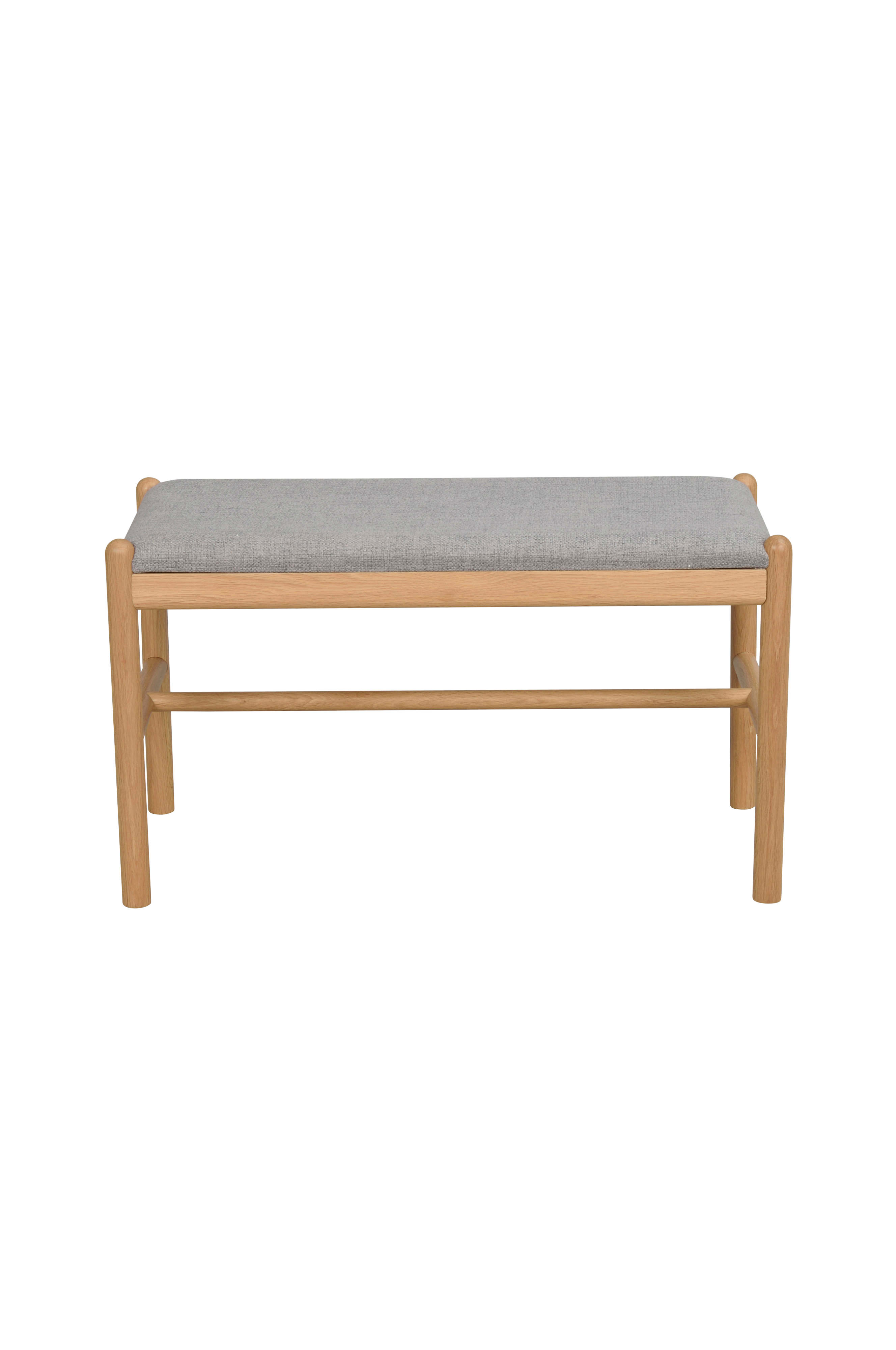 Milford bænk i massiv eg. Med gråt, slidstærkt polyesterstof. Milford bænk er designet af Rowico. 40 x 80, højde 45 cm. Leveres usamlet.
