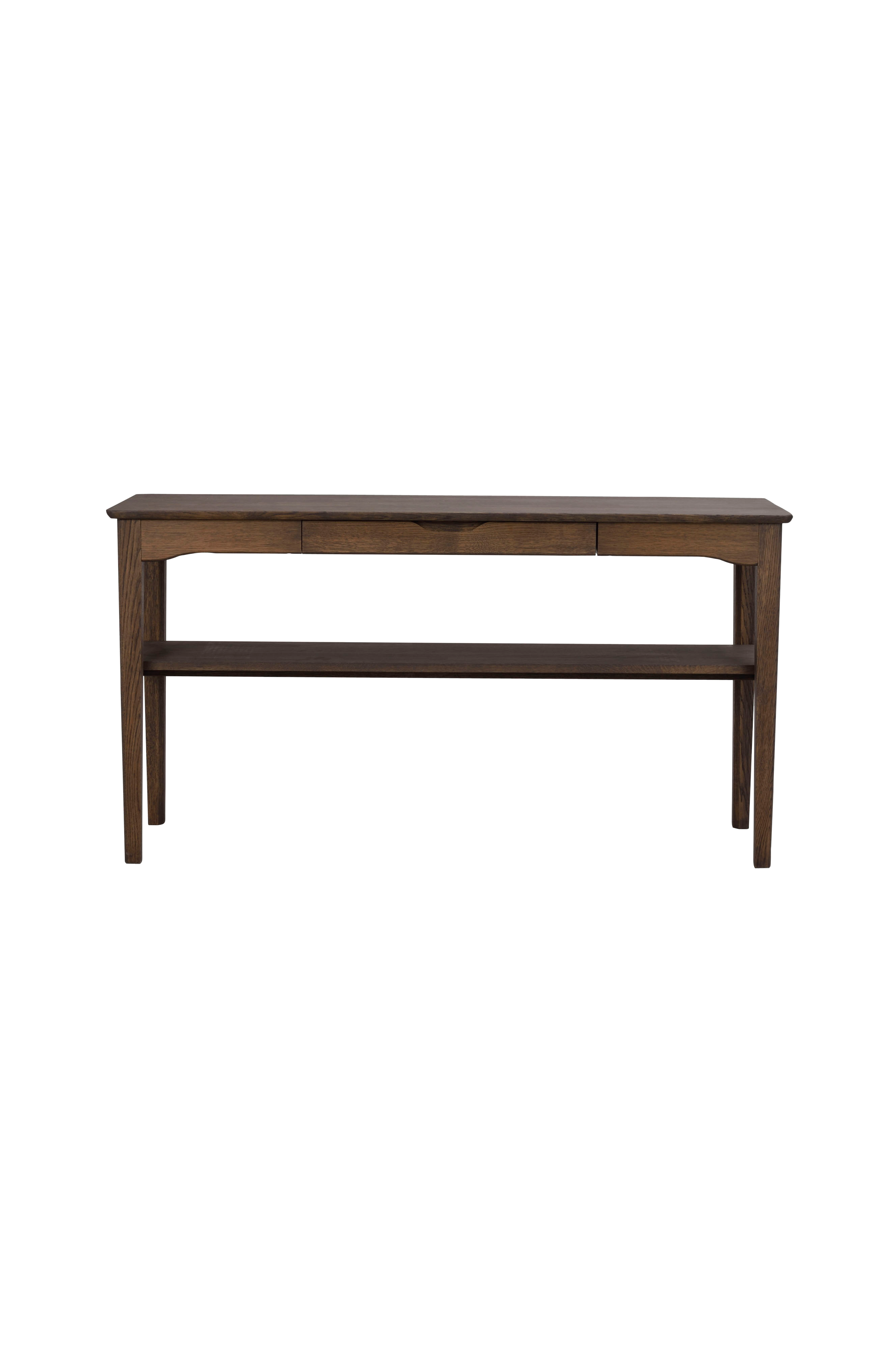 Med elegante detaljer som en buet profil under skænken og afrundede ben er Markham-skænken et møbel, der passer godt ind i de fleste hjem. Den har et enkelt, slankt design, inklusive en praktisk skuffe med et forsænket håndtag. Skænken er nem at placere og elske år efter år. Den er fremstillet af massiv brunolieret eg. Markham omfatter også spiseborde. Kollektionen er lavet af 100 % fsc®-certificeret træ, hvilket gør den til et bæredygtigt valg.