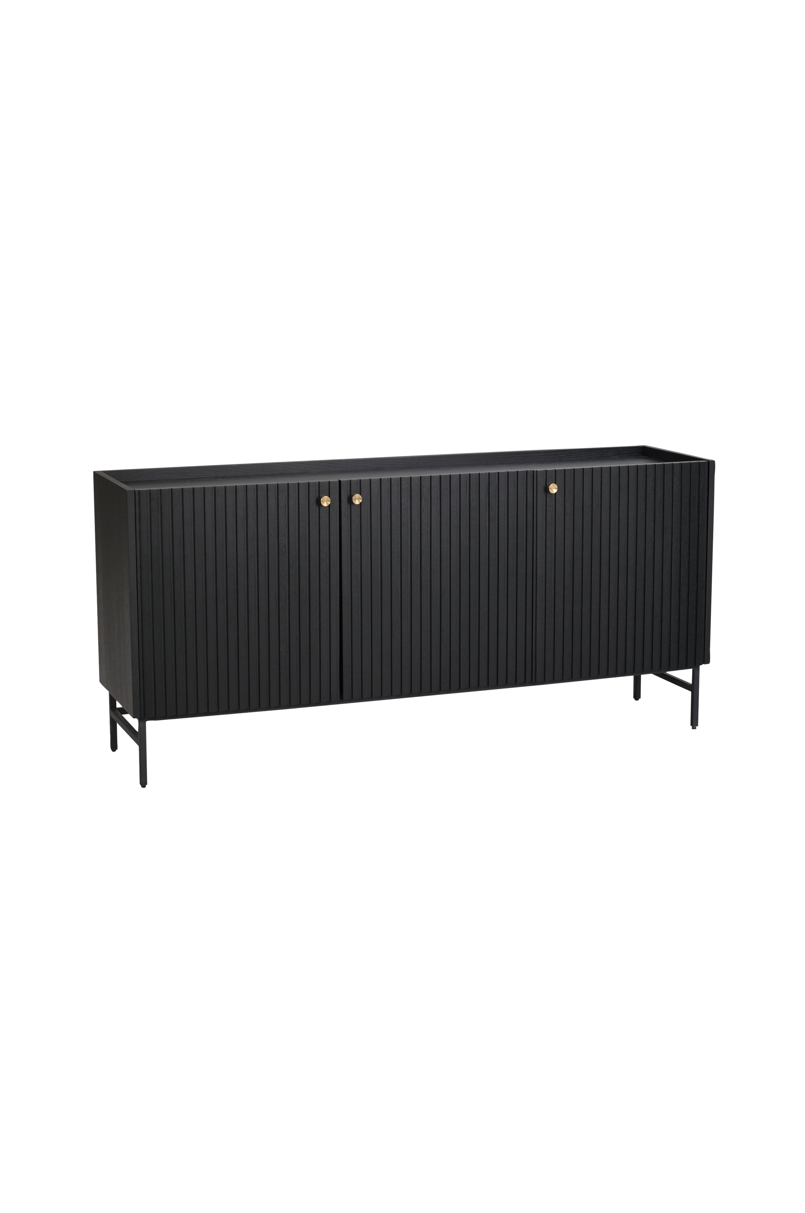 Halifax skænk i sortlakeret eg med sorte metalben. Overfladen består af massive ekeribber på finér. Lågerne har soft-close funktion. Hylderne indvendigt kan flyttes. Bredde 160 cm, højde 75 cm, dybde 40 cm. Leveres usamlet.