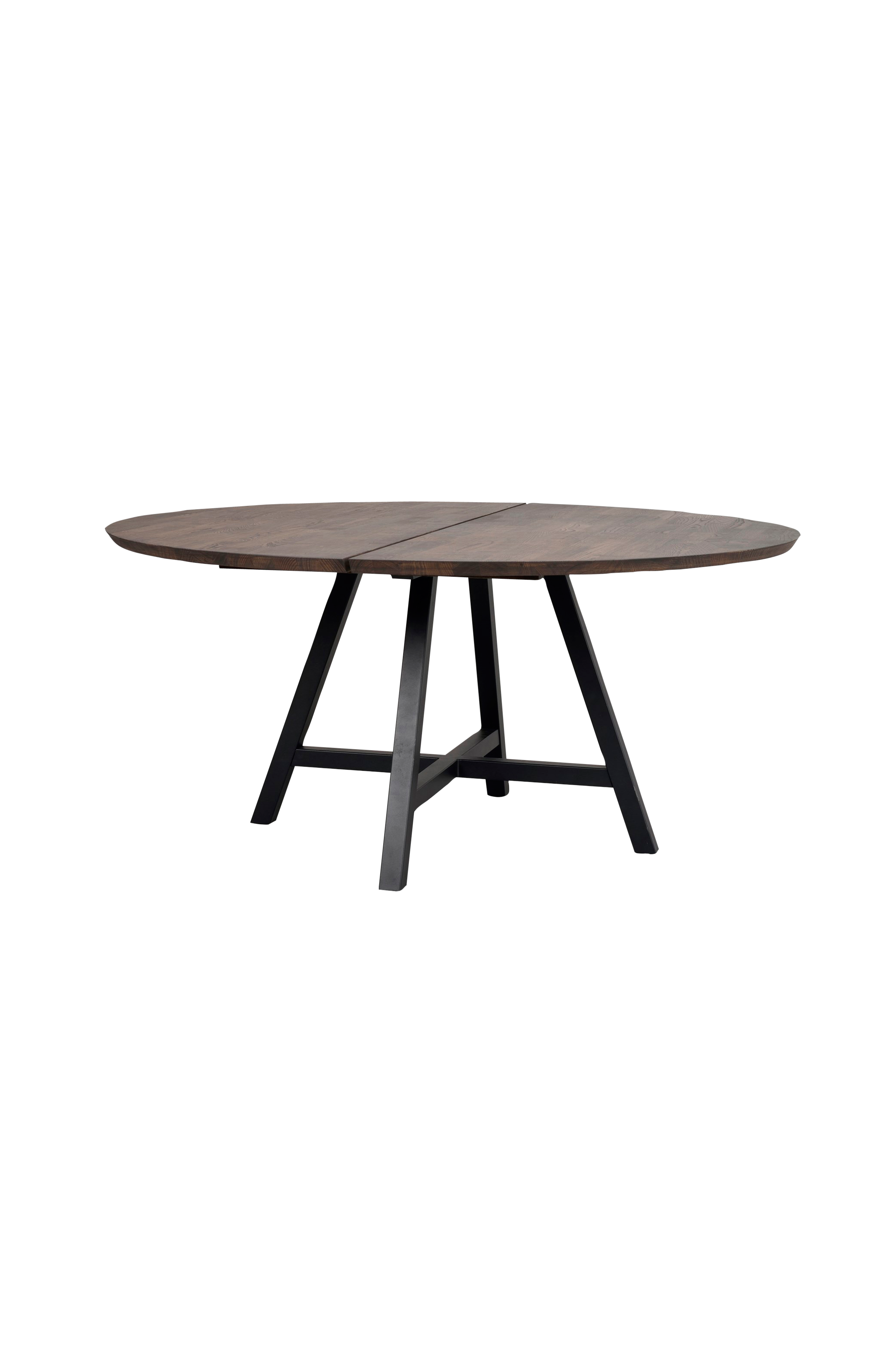 Carradale spisebord med todelt massiv bordplade i massiv eg og A-ben i sort pulverlakeret metal.