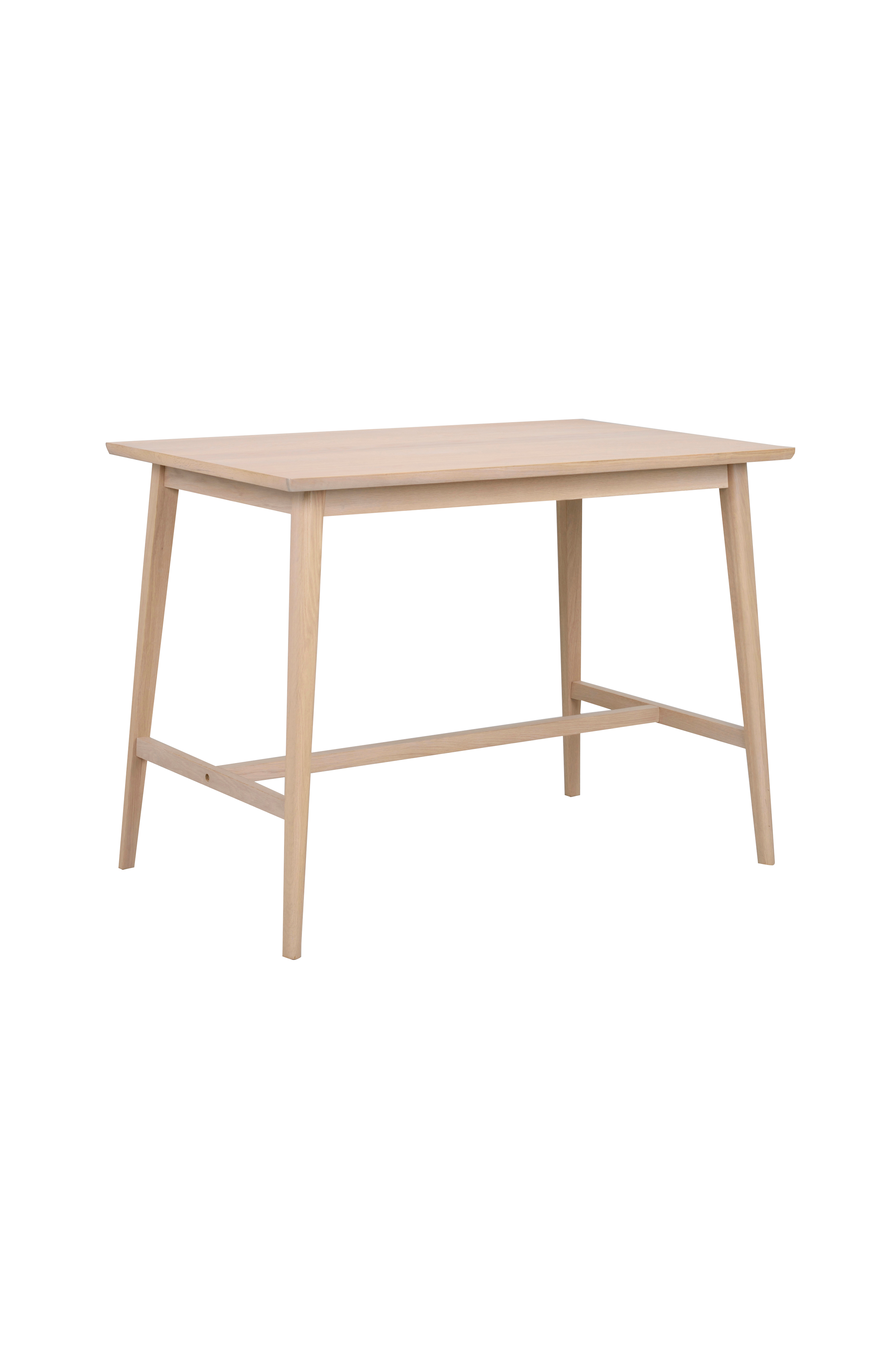 Jenson barbord i hvidpigmenteret eg passer perfekt, hvis du vil have flere siddepladser på begrænset plads. Bordet er i egefiner med massive kanter og understel i massiv eg. X 122, højde 90 cm. Leveres usamlet.