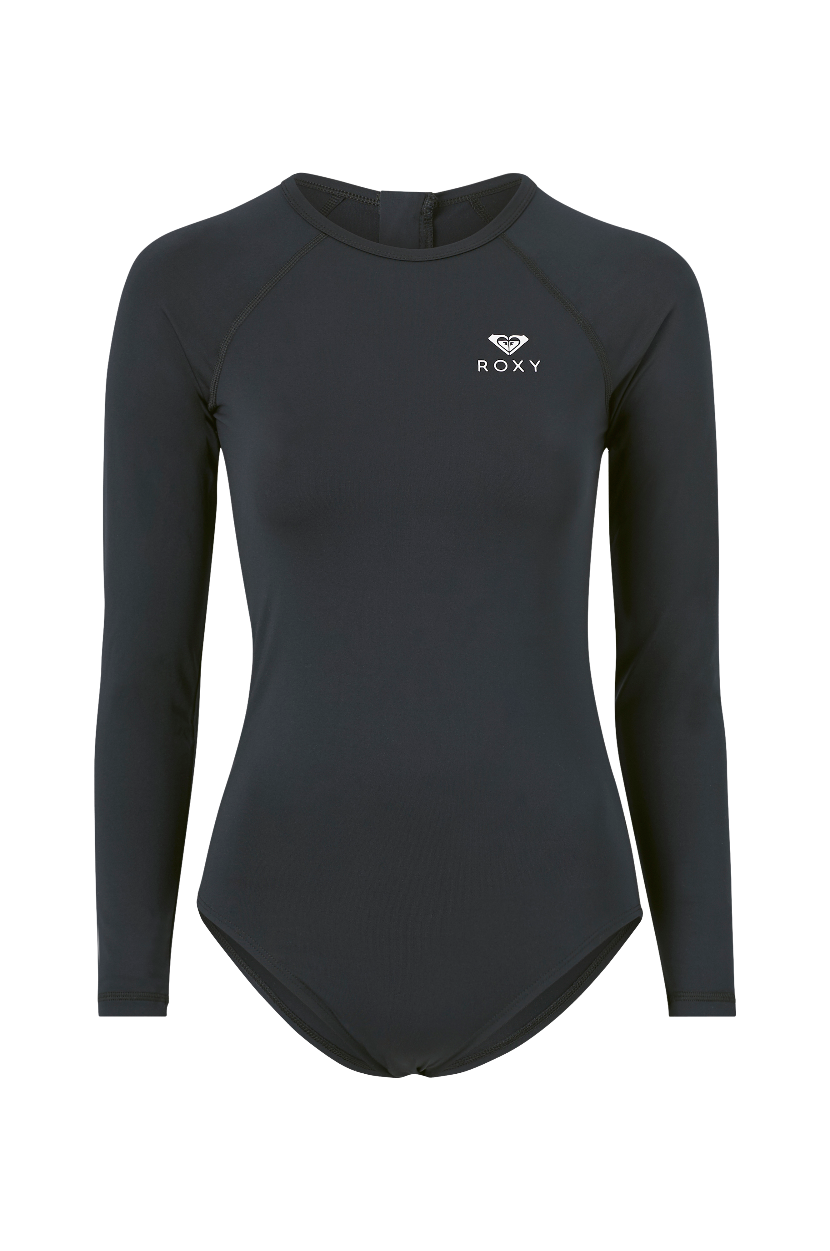 Langærmet badedragt i blødt stretchmateriale med lynlås i ryggen. Rund hals. UV-beskyttelse UPF50.