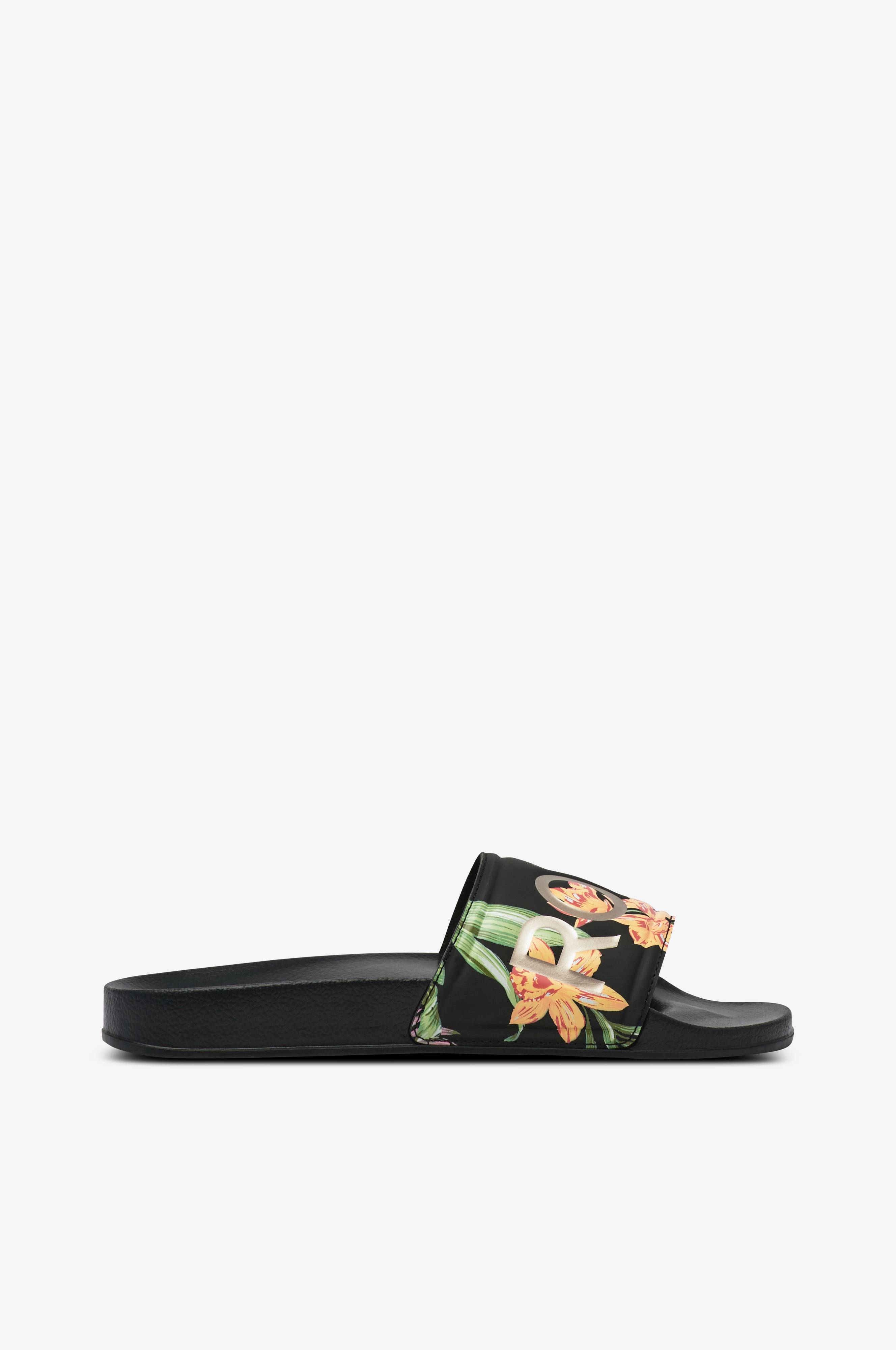 Badetøffel Slippy II fra Roxy. Båndet over foden har let vatteret tekstilfor. Fodformet sål.