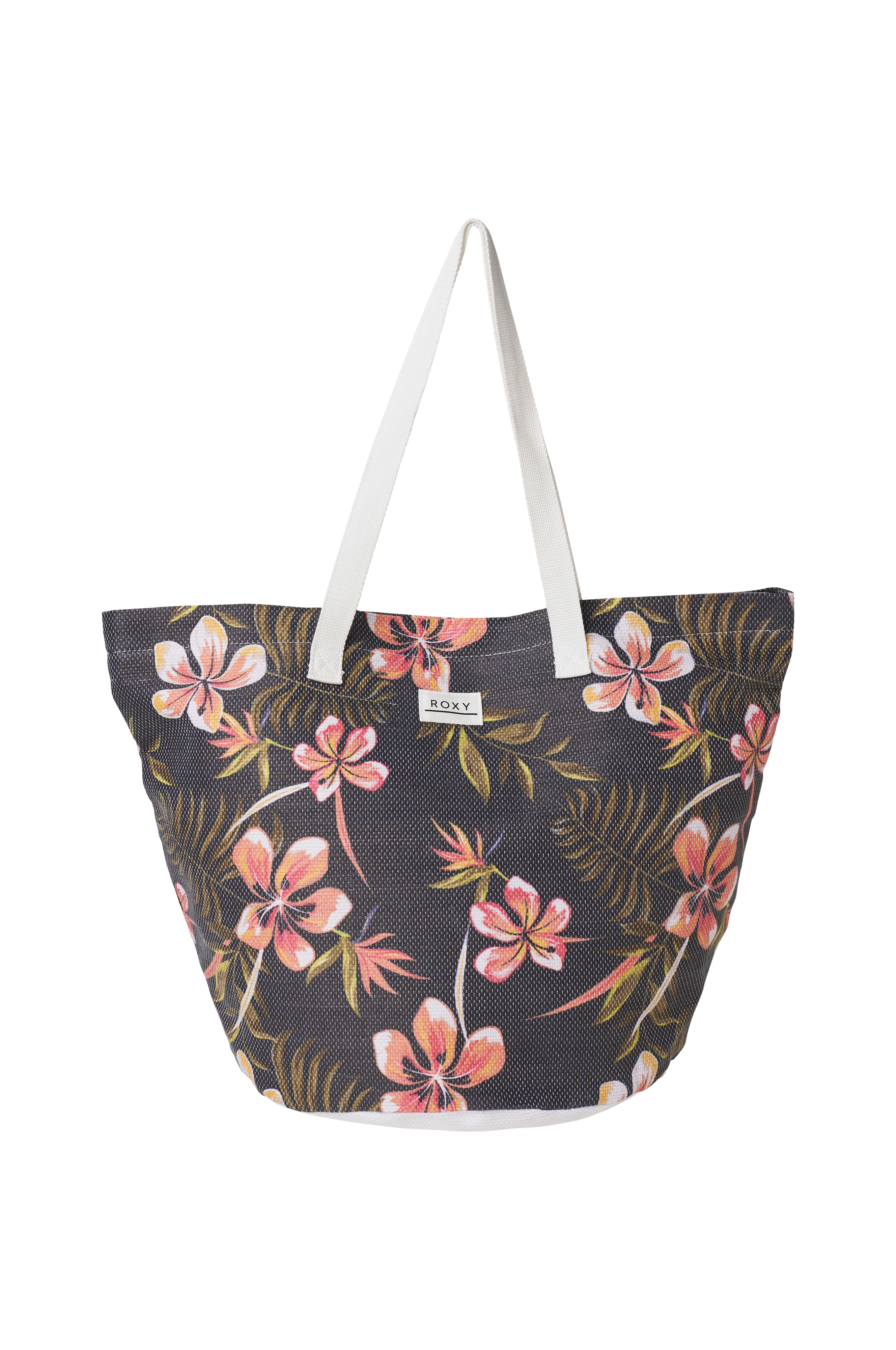 Smuk blomsterprint taske. Tasken har et lille klistermærkeområde, hvor toppen af posen kan lukkes let. Inde er der ingen separate rum eller lommer.