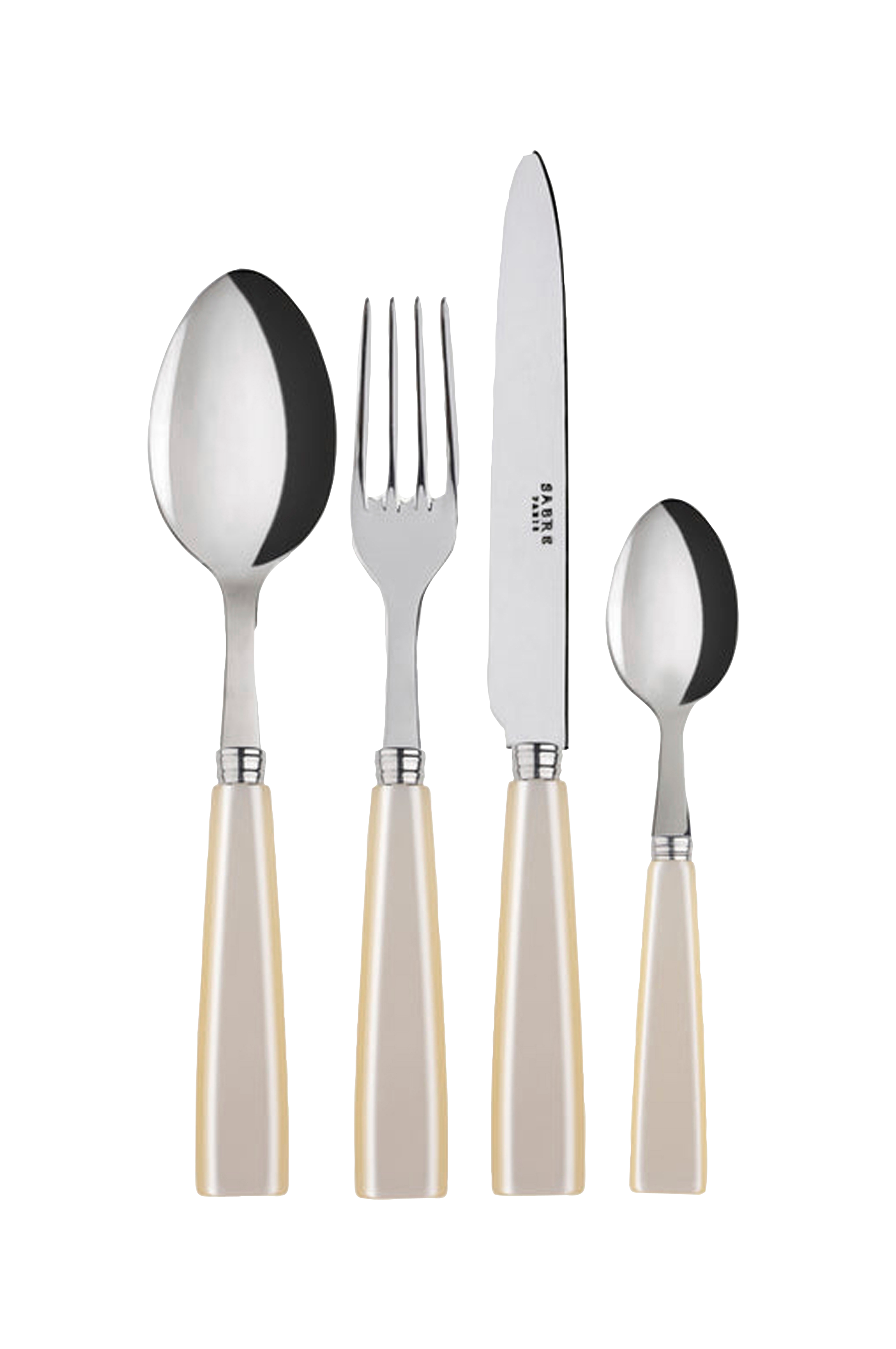 Sabre bestiksæt i 24 dele består af 6 spiseskeer, 6 gafler, 6 knive og 6 teskeer.