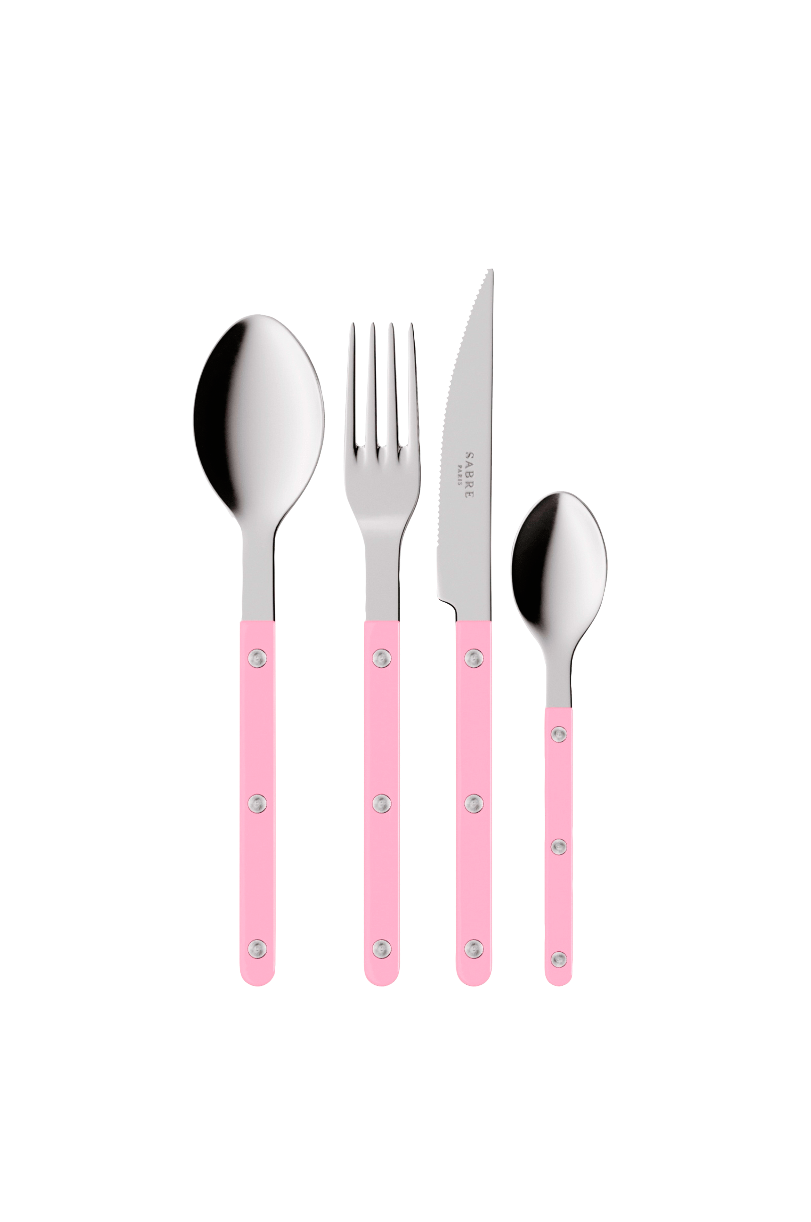 Da vi designede dette bestik, ønskede vi at indfange atmosfæren på en troværdig måde og samtidig tilføje et moderne touch: designet er enkelt, nitterne er synlige, mens farverne og materialerne skiller sig ud på en flot måde. Fra rød til blå, for ikke at glemme de fantastiske materialer med horn- eller skildpaddeeffekter. Vi er sikre på, at du vil nyde denne kollektion, som er designet til at være både traditionel og moderne på samme tid.