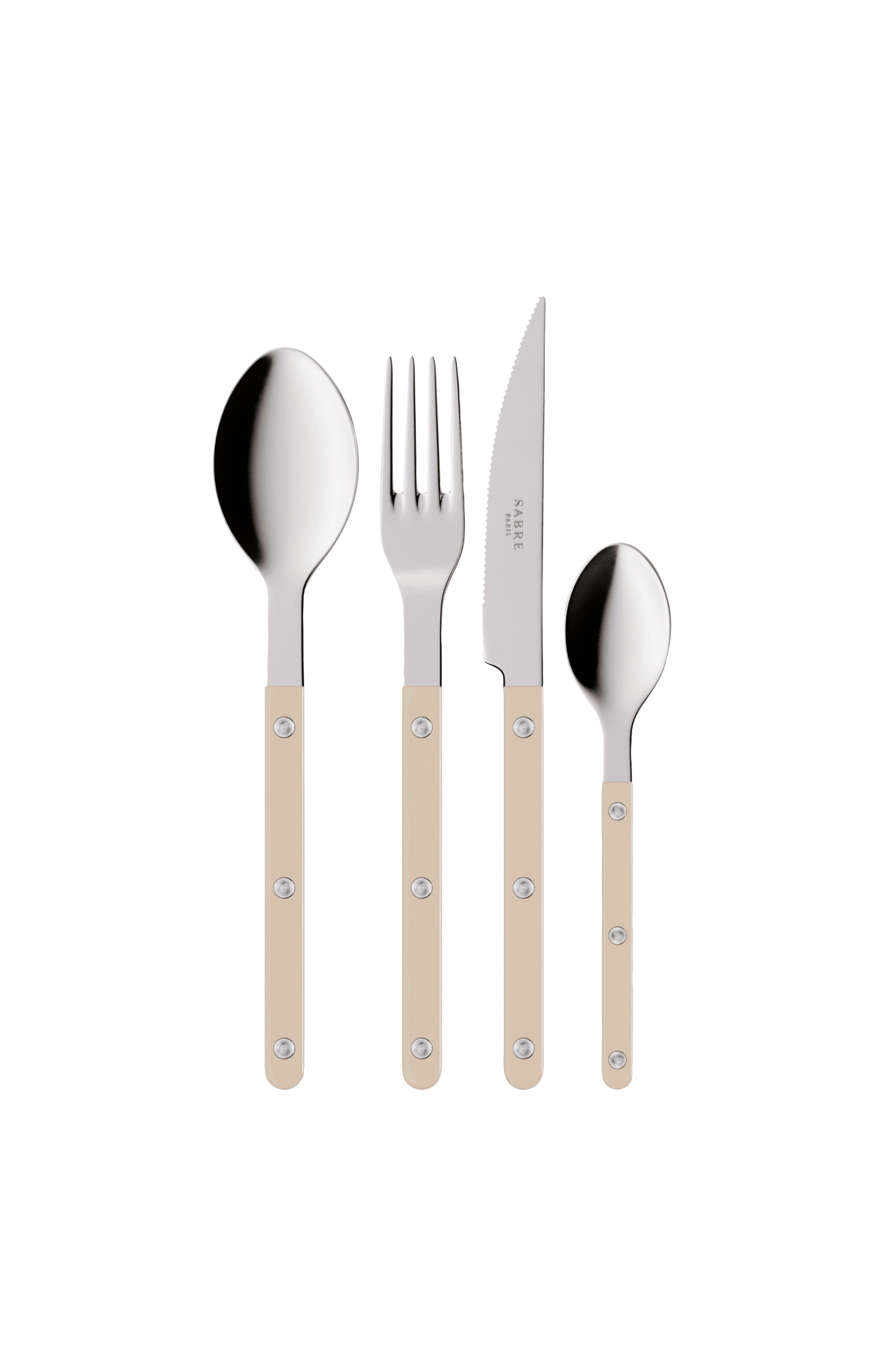 Dette sabelbestik med 24 dele består af 6 suppeskeer, 6 middagsgafler, 6 middagsknive og 6 teskeer. Det er det perfekte sæt til dine måltider.