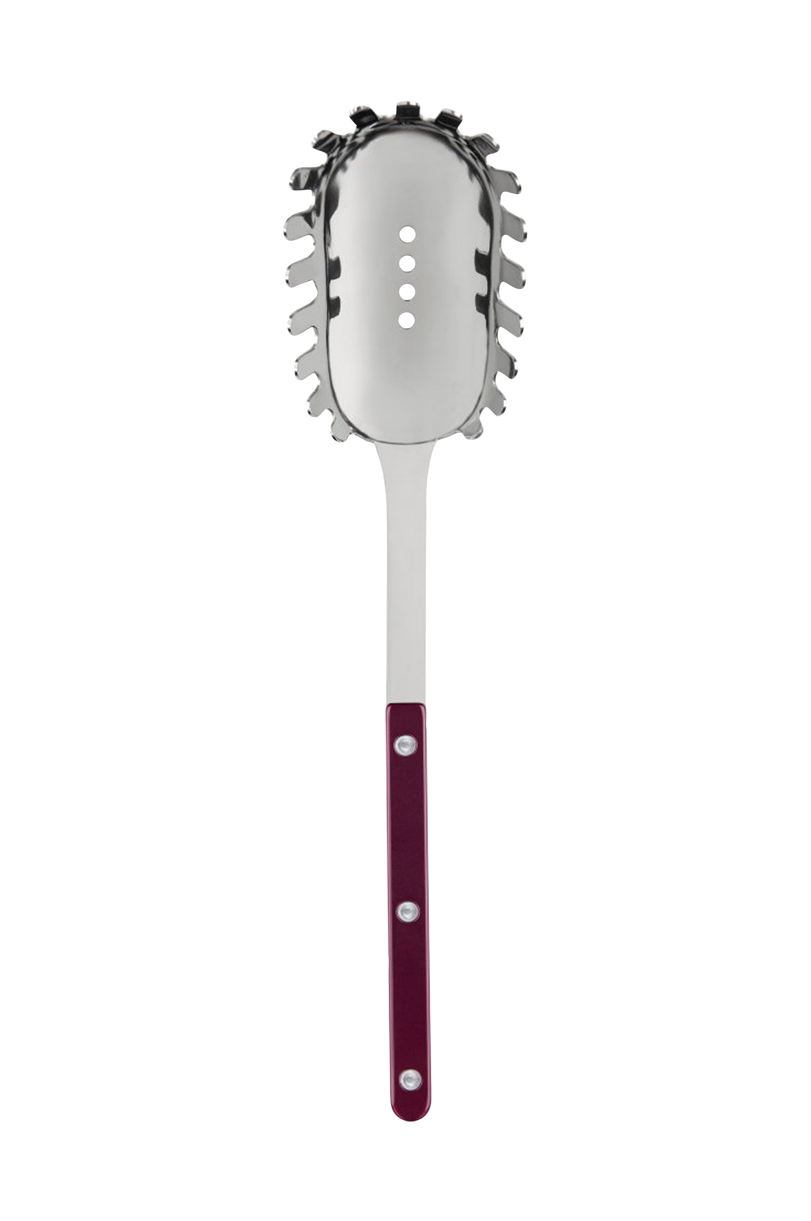 Sabre spaghettiskeen er perfekt til servering af lang pasta som spaghetti, tagliatelle og linguine.Den har store, afrundede tænder, som holder på pastaen, og små huller i bunden, så væsken kan løbe væk, og man undgår overskydende sauce.