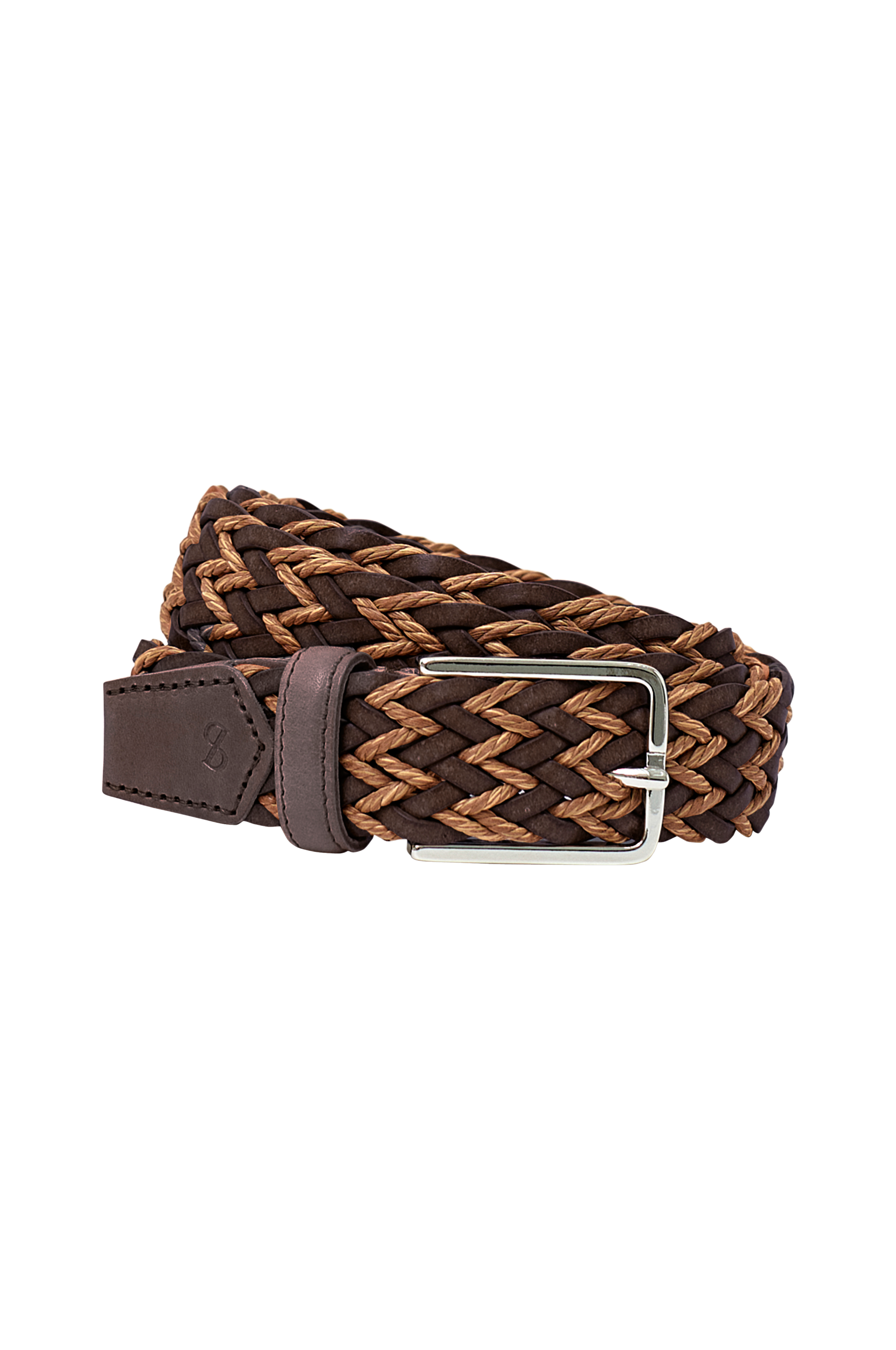 • Flettet bælte i læder og tekstil• Skinnende metallukning• Mål: B 3 cm