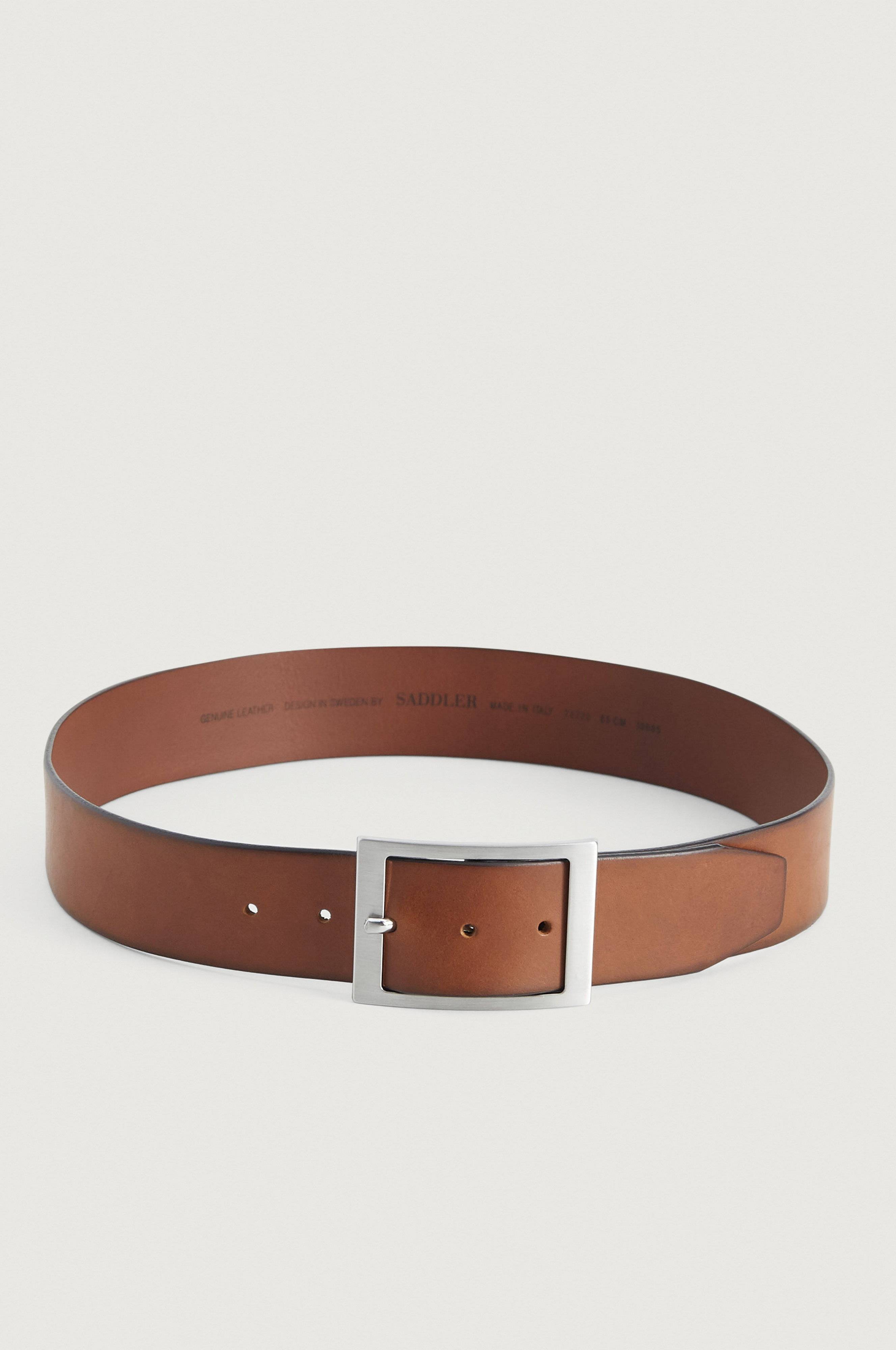 Bælte Sdlr Male Belt fra Saddler i læder med metalspænde. Længde 104 cm, bredde 4 cm.