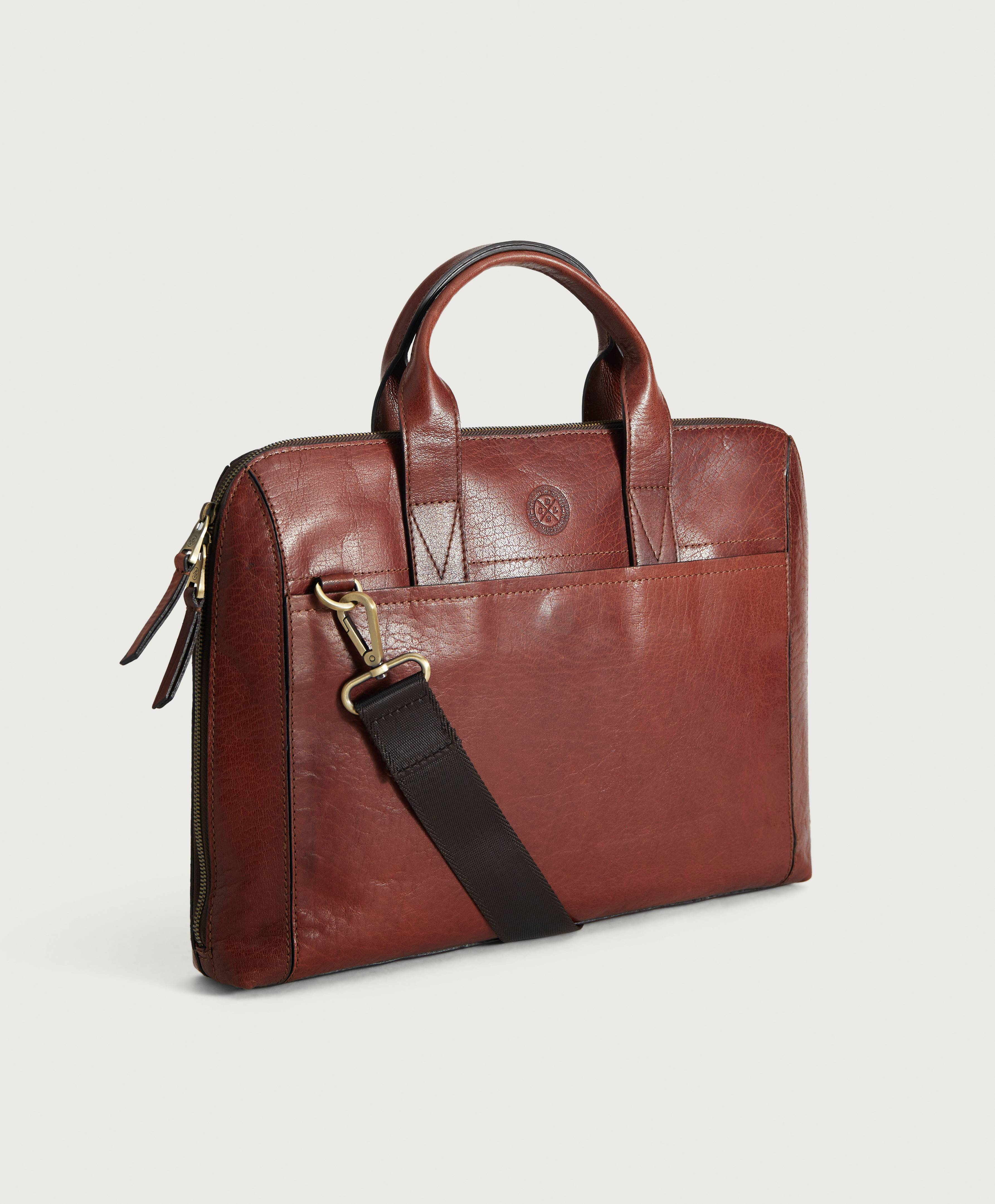 Computertaske Gustav fra Saddler i klassisk og tidløs model. Af læder i høj kvalitet og detaljer i guldfarve. Tasken har et computerrum med plads til en 15 -computer, to slip-in-lommer og en lomme som lukkes med lynlås. På ydersiden er en lomme med magnetknap. Justerbar samt aftagelig skulderrem i tekstil med detaljer i læder. Ca. mål: 45 x 30 x 4 cm.