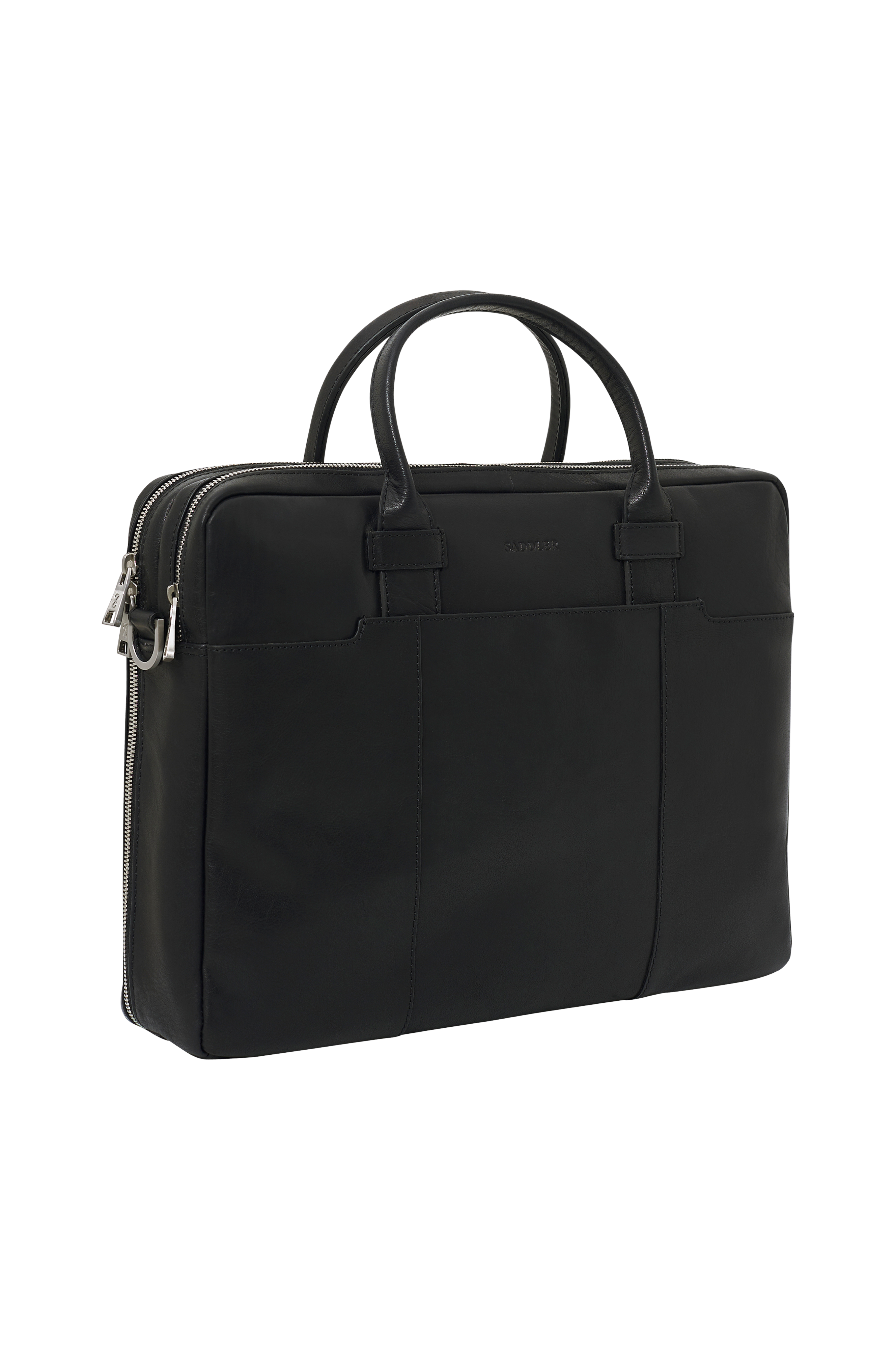 Taske fra Saddler i ægte læder. Tasken har to hovedrum som lukkes med lynlås og på indersiden findes flere mindre rum. Aftagelig, justerbar skulderrem medfølger.