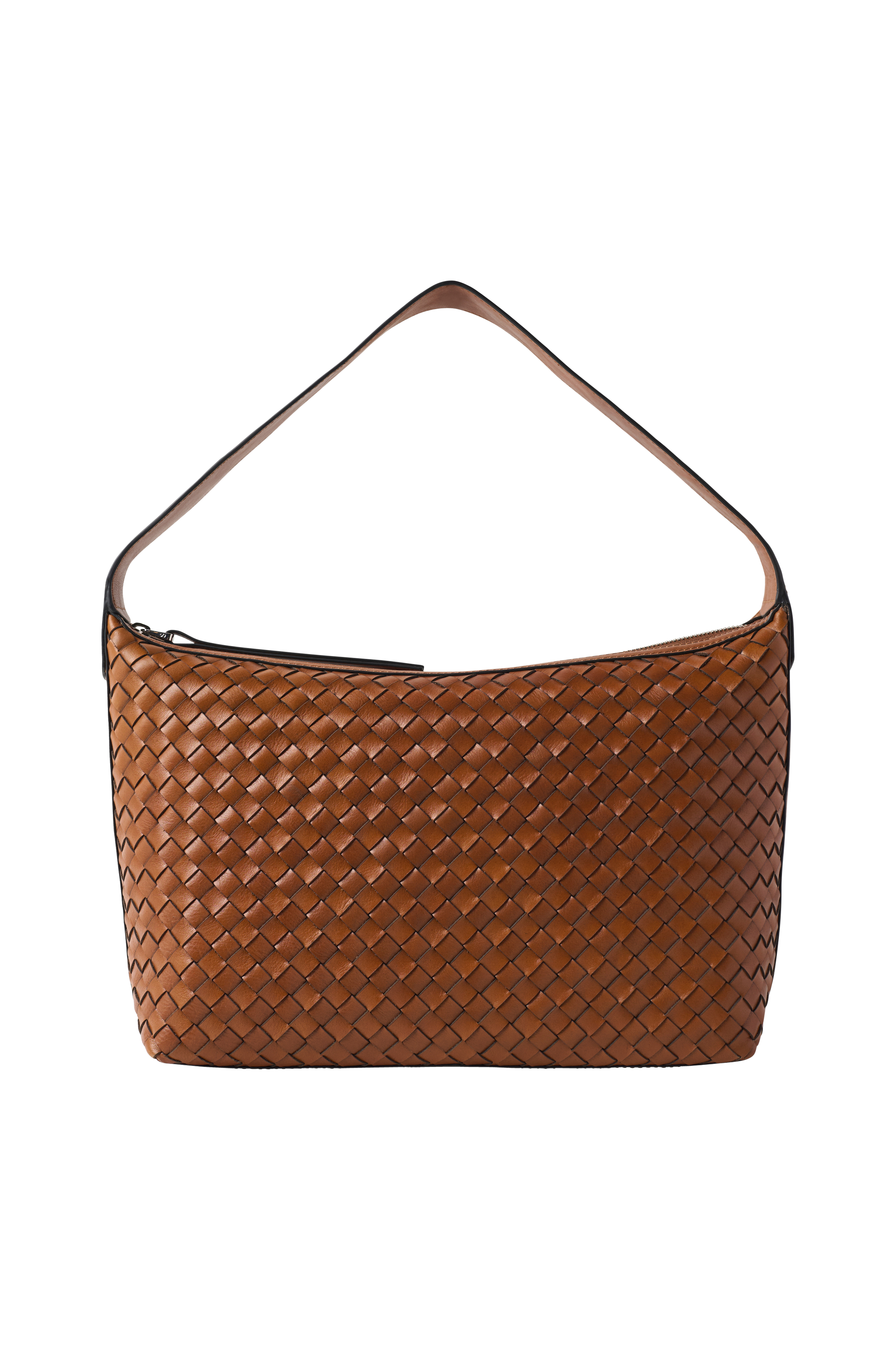 En rummelig skuldertaske i smukt flettet læder, inspireret af traditionelt håndværk. Tasken bliver blødere ved daglig brug. Tasken fremhæver dit hverdagslook, men er også perfekt til aftenen. Den har et stort hovedrum med metallynlås, en indstikslomme og en lynlåslomme på indersiden. Den rummelige taske har plads til alle dine vigtigste ting plus lidt mere. Taskens hank er 55 cm og designet til at blive båret på skulderen. Spændet er lavet af skinnende, sølvfarvet metal.