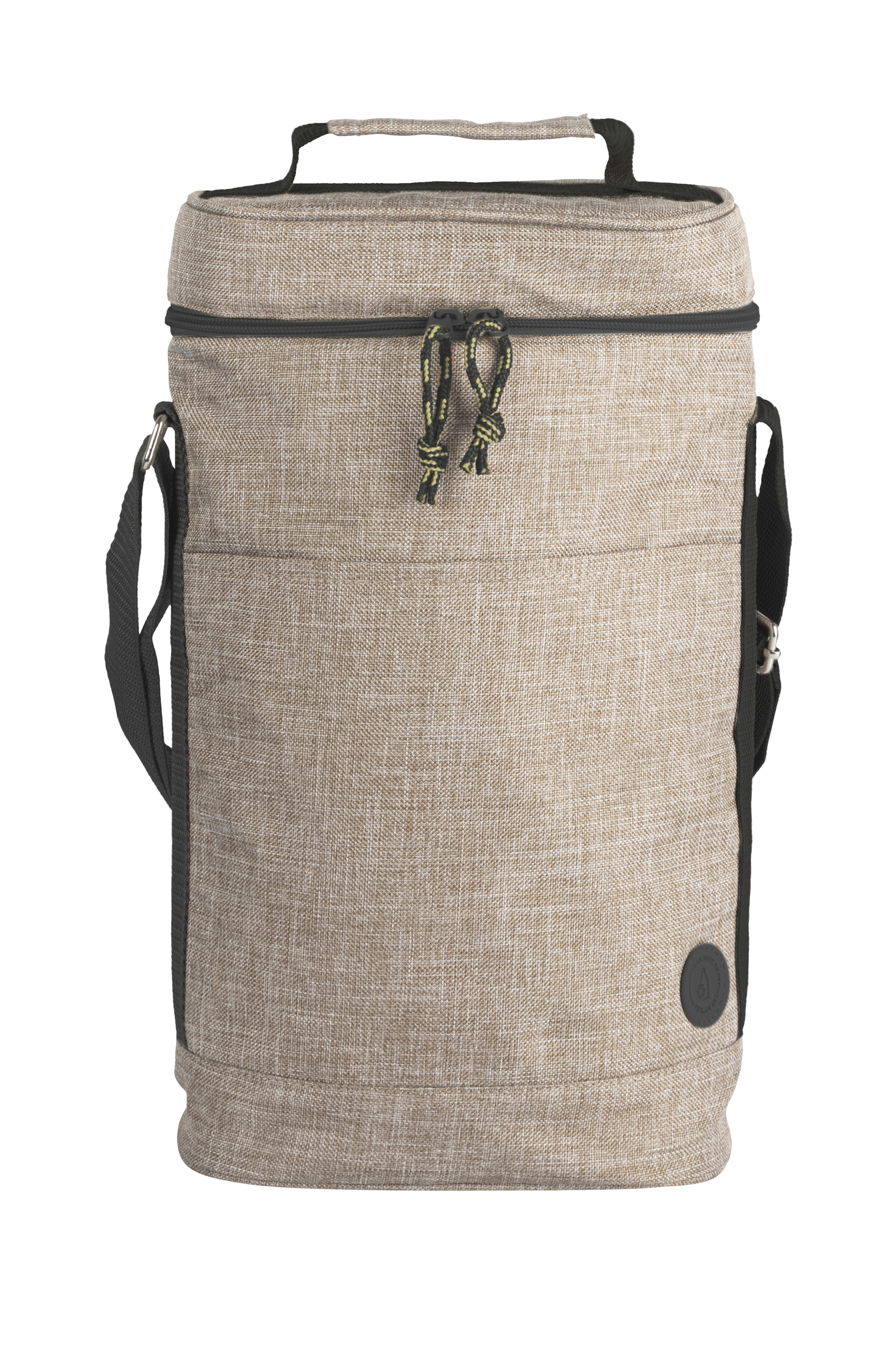 En praktisk og sporty køletaske i beige rPet-materiale med stilfulde detaljer i beige og sort. Denne højere model er ideel til to vinflasker eller 1,5-liters Pet flasker. Udstyret med både bærehåndtag og en justerbar skulderrem. Vandtætte sømme på indersiden. Ydermaterialet er lavet af rPet (Recycled Pet), fremstillet af genbrugte Pet flasker. Designet af Studio Sagaform.