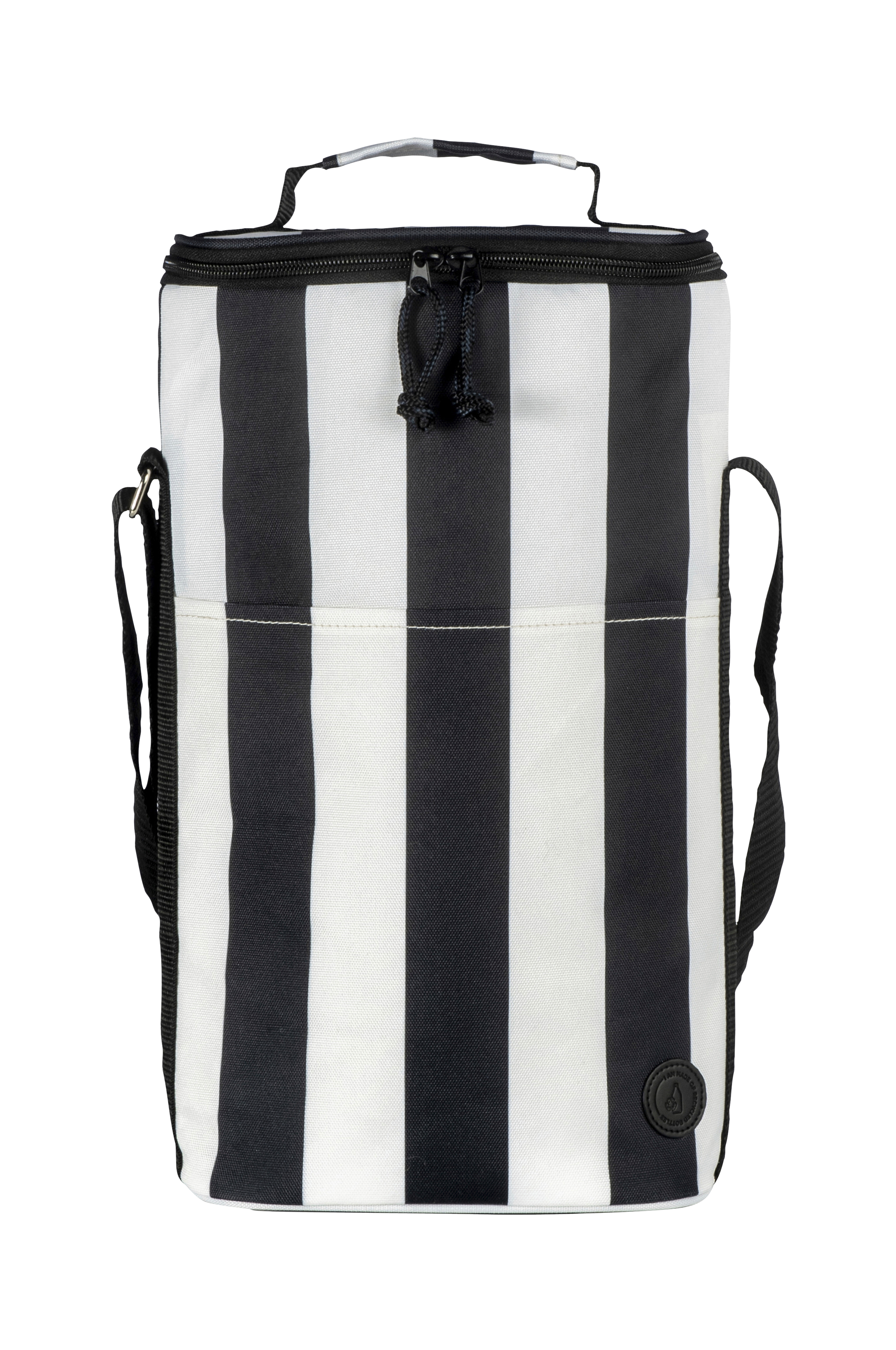 En praktisk og kompakt køletaske med smagfulde striber, perfekt til udflugter året rundt, uanset om det er sommer- eller vinteraktiviteter. Denne højere model er ideel til to vinflasker eller 1,5-liters Pet flasker. Køletasken har en lille frontlomme, og ydermaterialet er fremstillet af genbrugte Pet -flasker. Vandtætte sømme på indersiden. Fås i forskellige farver.