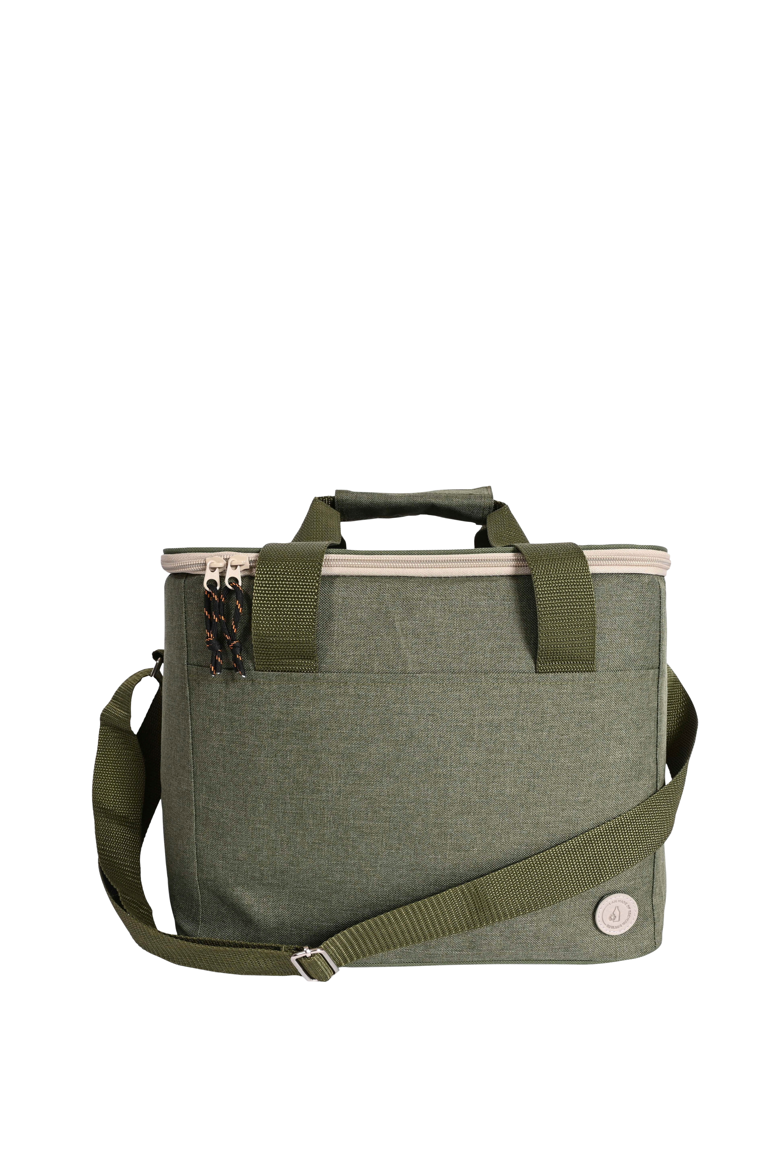 Rummelig, stilfuld og sporty køletaske i grøn med detaljer i beige og sort. Praktisk med både bærehåndtag og justerbar skulderrem.