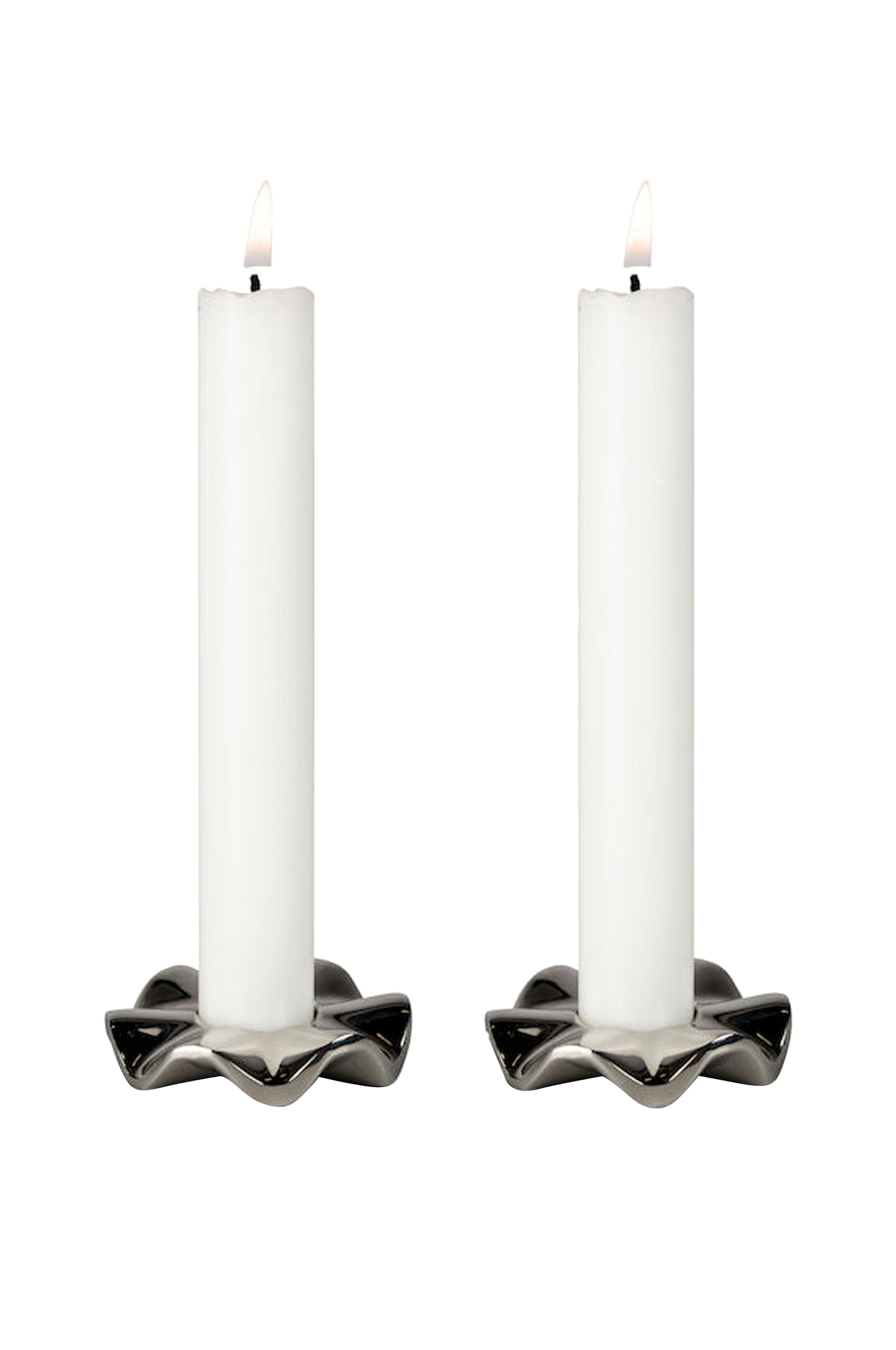 2 stk. lysestager med en klassisk form og skøn tyngde. Mål: Diameter 6 cm, højde 1 cm.