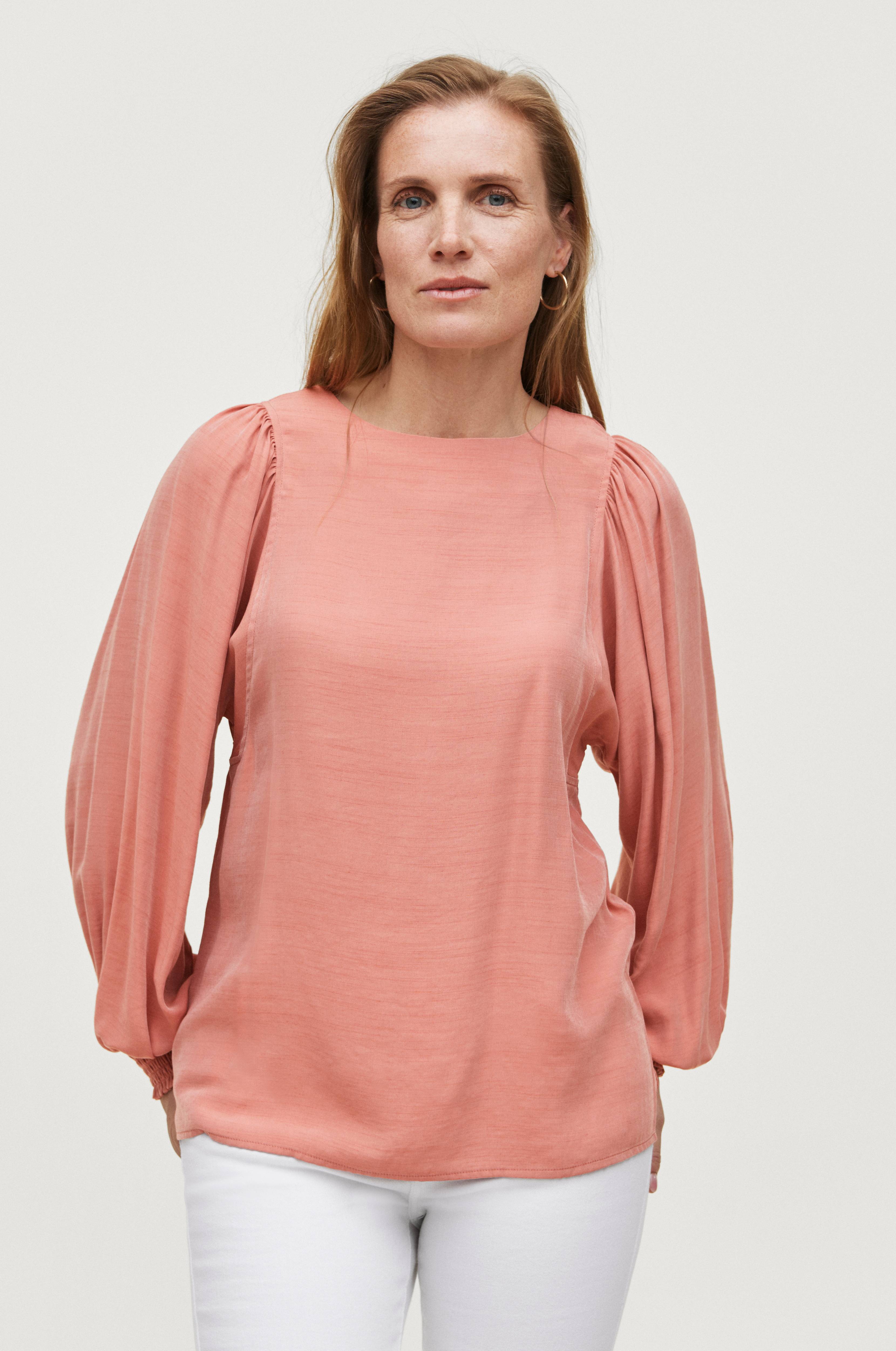 • Ballonærme med smock ved ærmeafslutningerne• Rynket søm på skuldrene• Skjult lynlås i ryggen