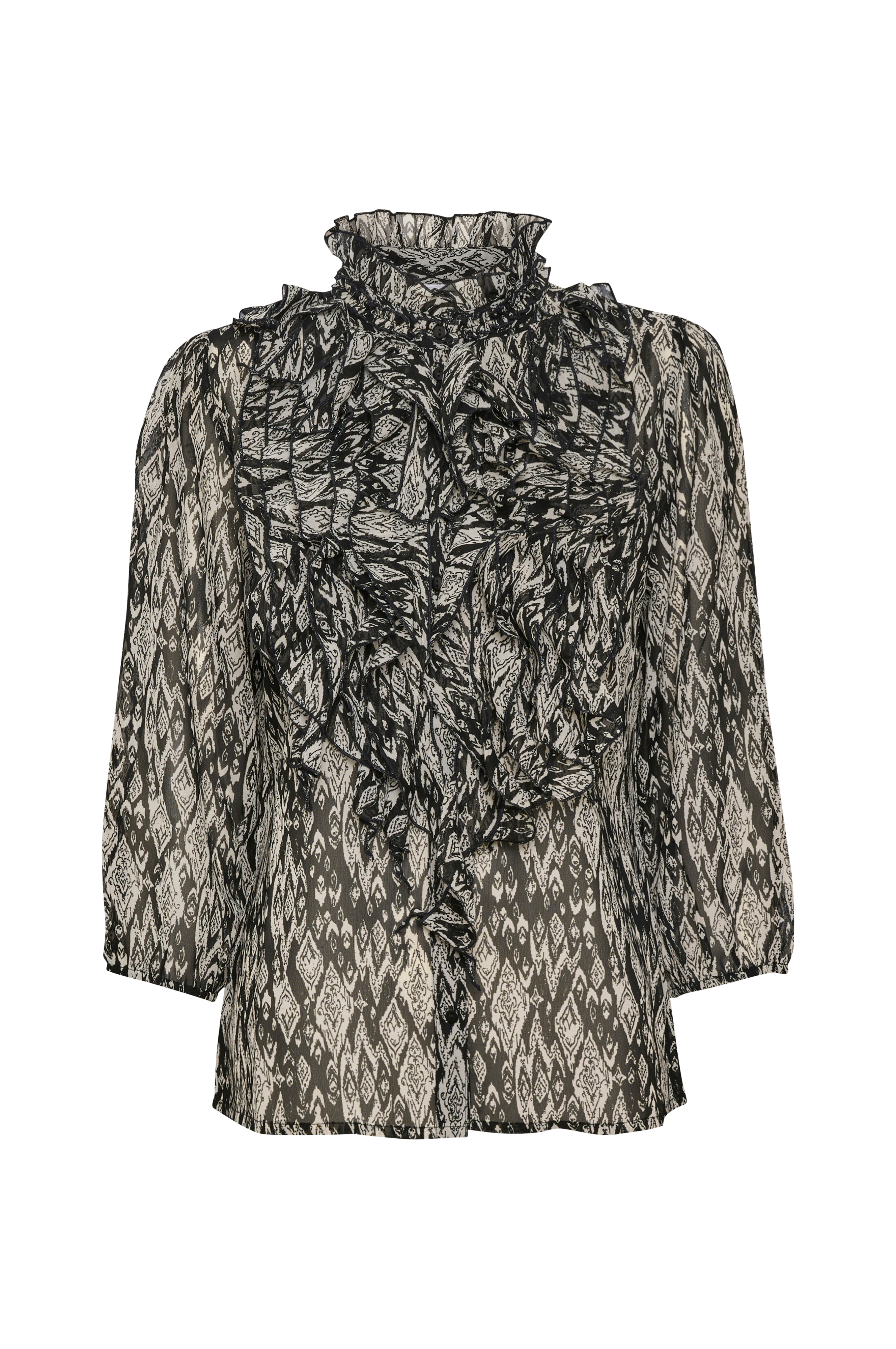 • Fremstillet af chiffon• Rund hals med volanter• Volanter på brystet• Lige, 3/4 langt ballonærme med elastisk manchet