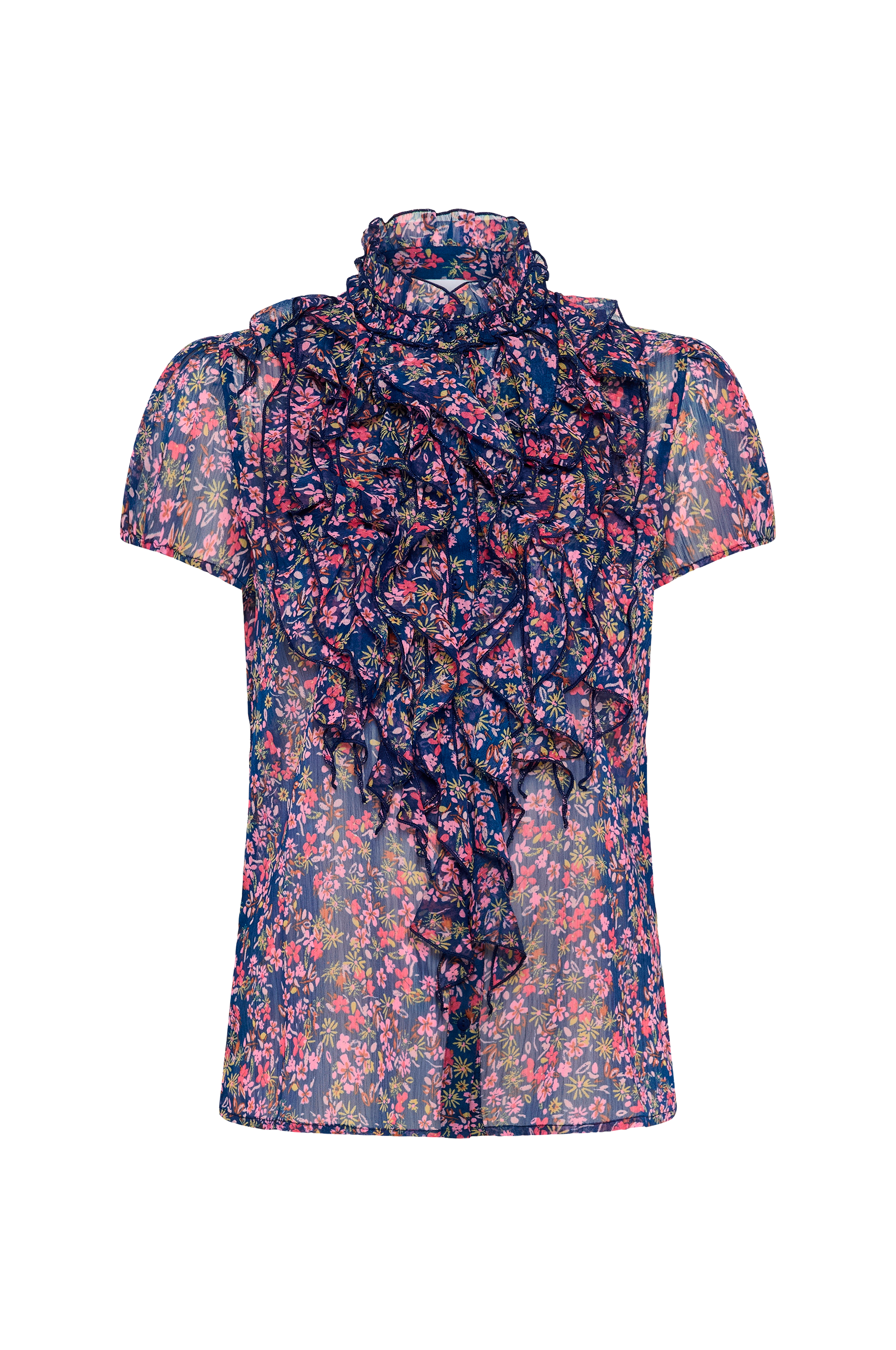 Farven (rød-hvid spættet) er virkelig lækker, og sammen med flæserne gør det blusen til en rigtig festbluse uden at se for klovneagtig ud.