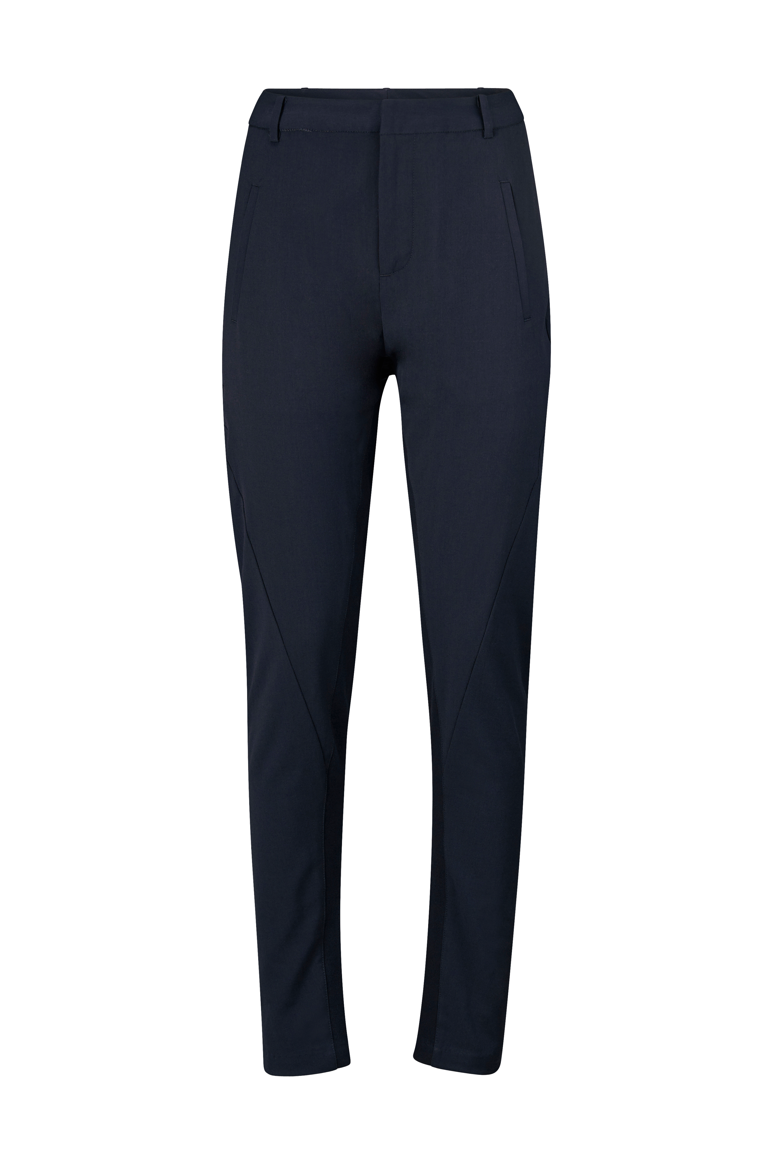 Buks fra Saint Tropez i elegant model. Vævet kvalitet med flot kontrastpanel af jersey i rib på inderside af ben. Løs pasform med noget afsmallende benkant. Dekorativ, diagonal søm foran på benet, lommer i siderne og en pyntelomme bagpå. Gylp med lynlås og knap samt hægte og malle. Benlængde 76 cm i str. 38