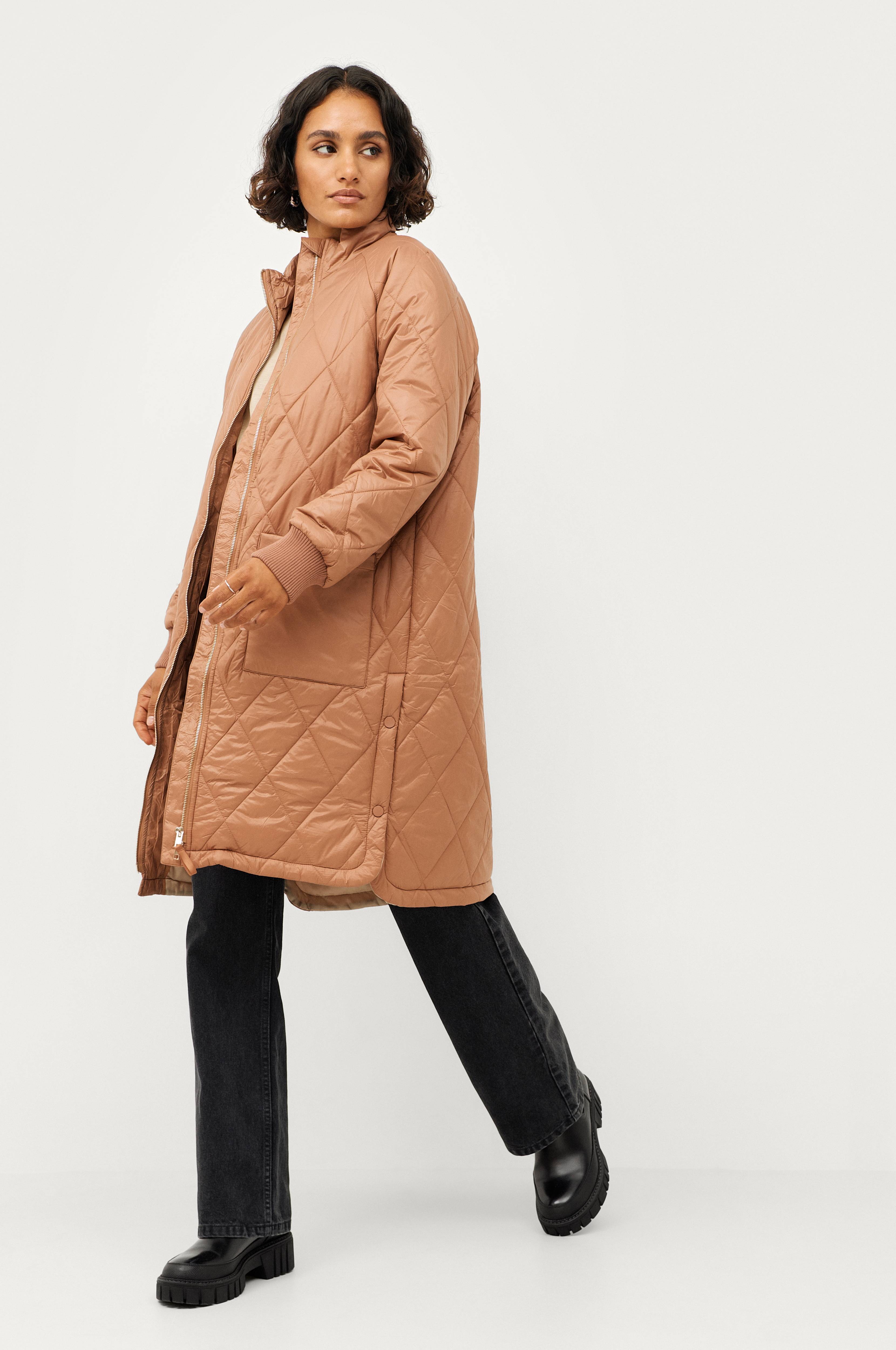 • Foret, quiltet model• To-vejs lynlås foran• Høj krave• Store lommer• Ribmanchet ved manchetterne• Høje ventilationer med trykknapper nede i siderne• Længde: 96 cm i størrelse S
