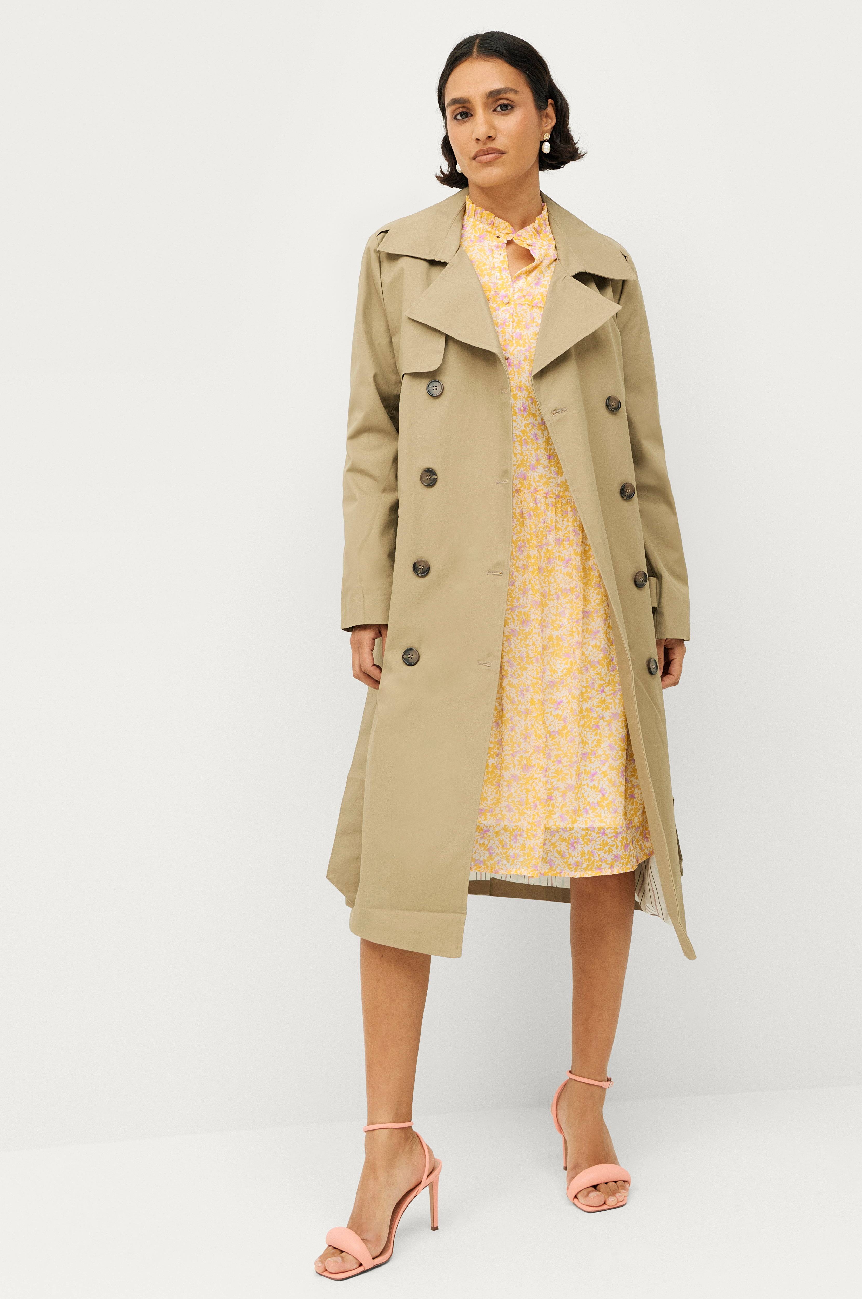 • Frakke i bomuld• Aftageligt bindebælte ved taljen• Knapdetalje ved manchetterne• To lommer• Slids nede bagved• Længde: 110 cm i størrelse S