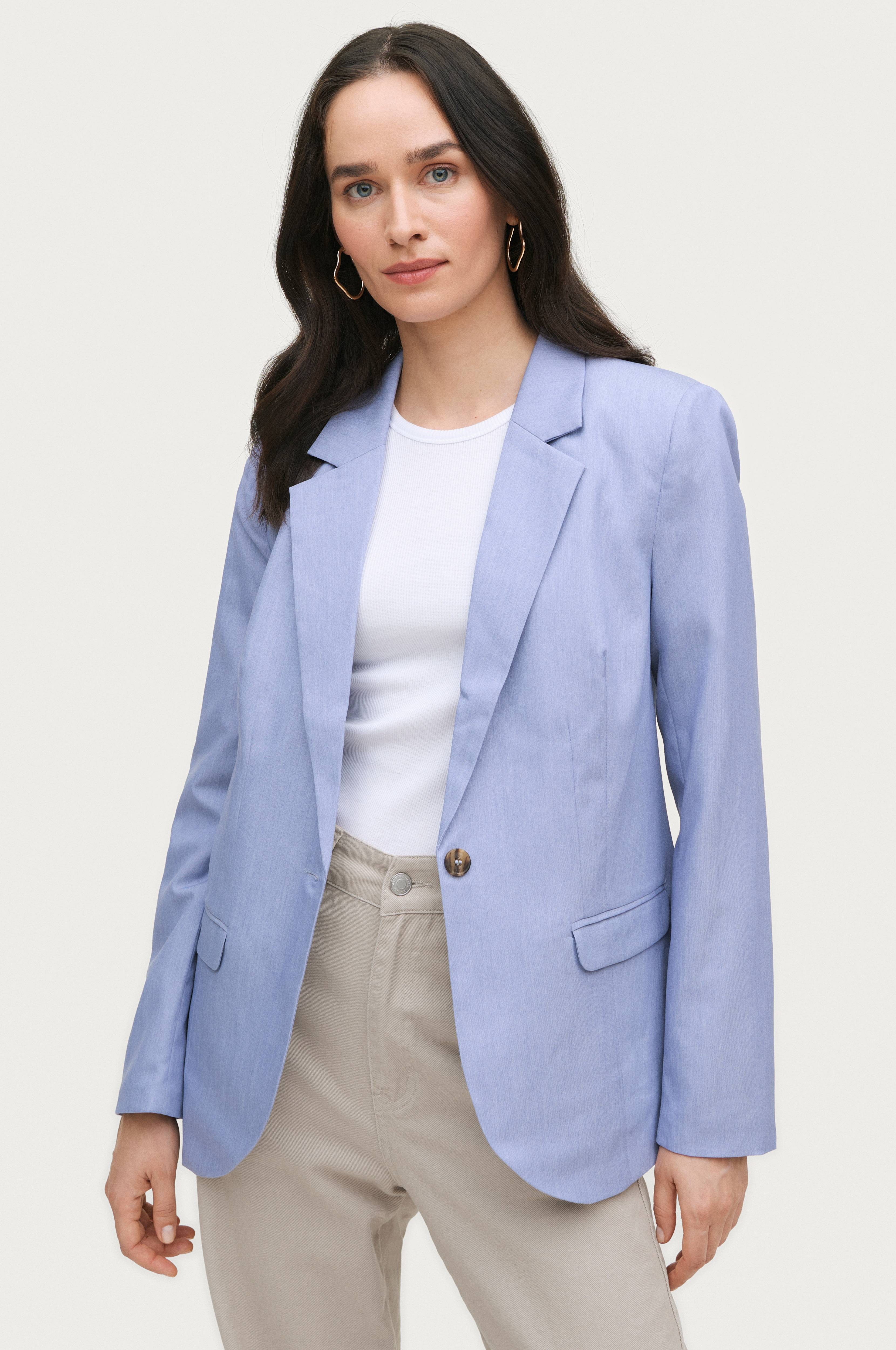 • Krave med revers• Knap foran• To lommer• Tynde skulderpuder
